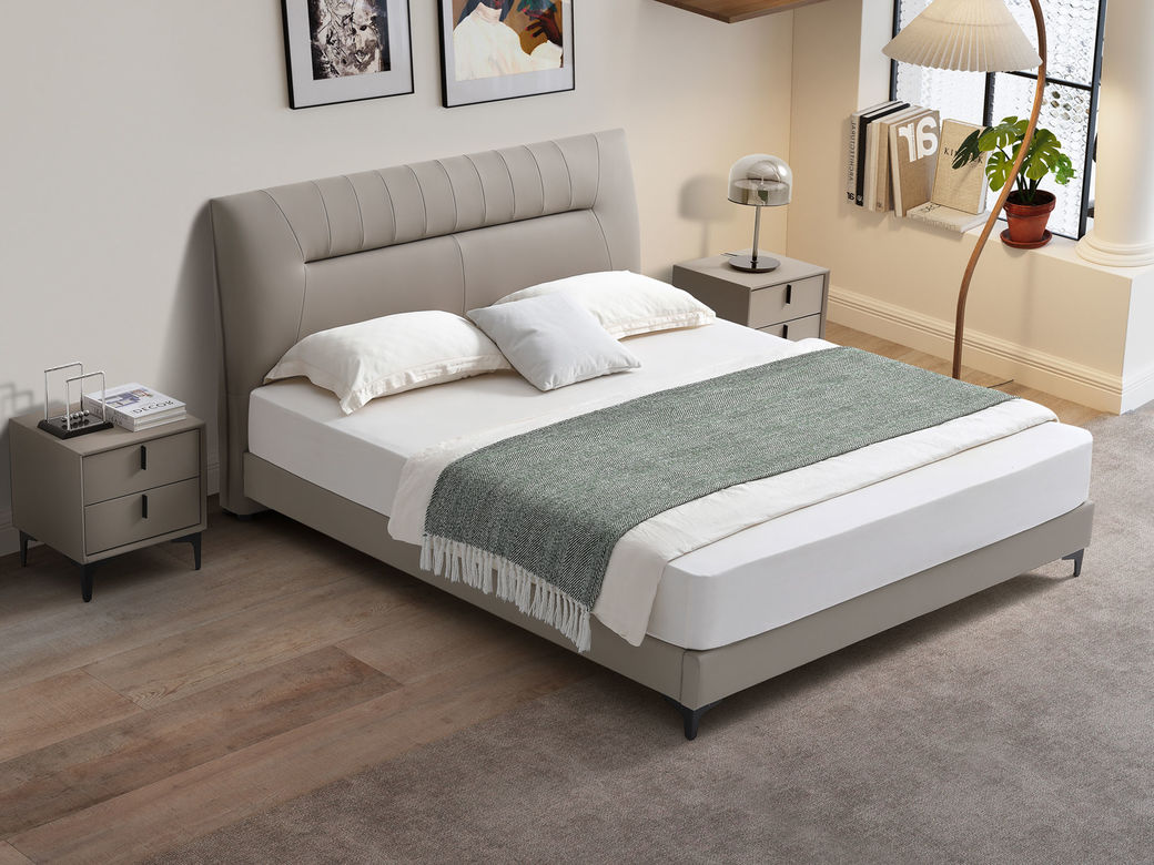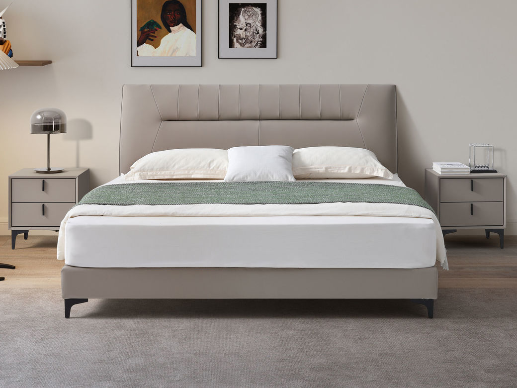 【套餐专享价】每屋优享系列 现代简约 实木内架+高回弹海绵+钢木排骨架+生态真皮+中纤板+仿皮+碳素钢脚 1.8米床+床头柜*2¥3168