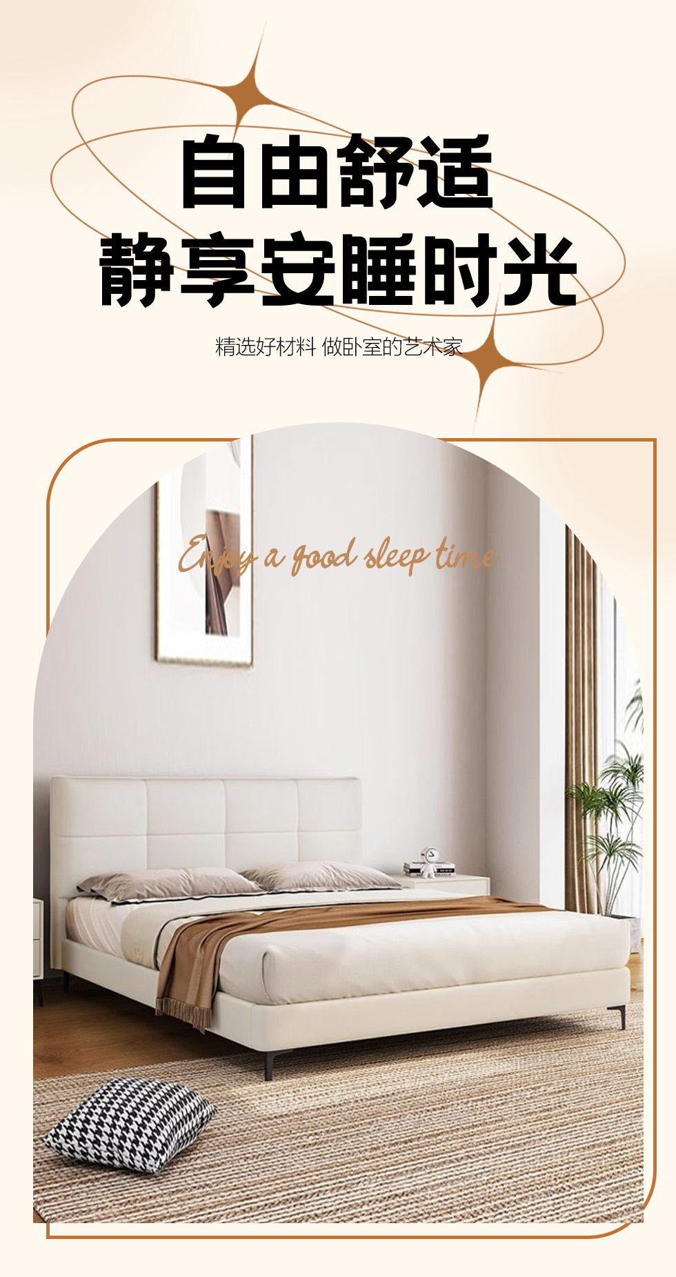 【套餐专享价】每屋优享系列 现代简约 松木内架+高回弹海绵+科技真皮 1.8米床¥3168