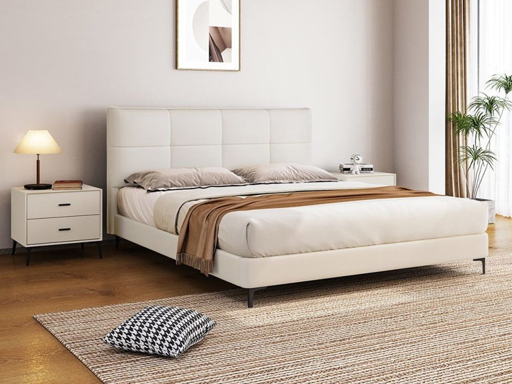 【套餐专享价】每屋优享系列 现代简约 实木内架+高回弹海绵+钢木排骨架+生态真皮+中纤板+仿皮+碳素钢脚 1.8米床+床头柜*2¥3168