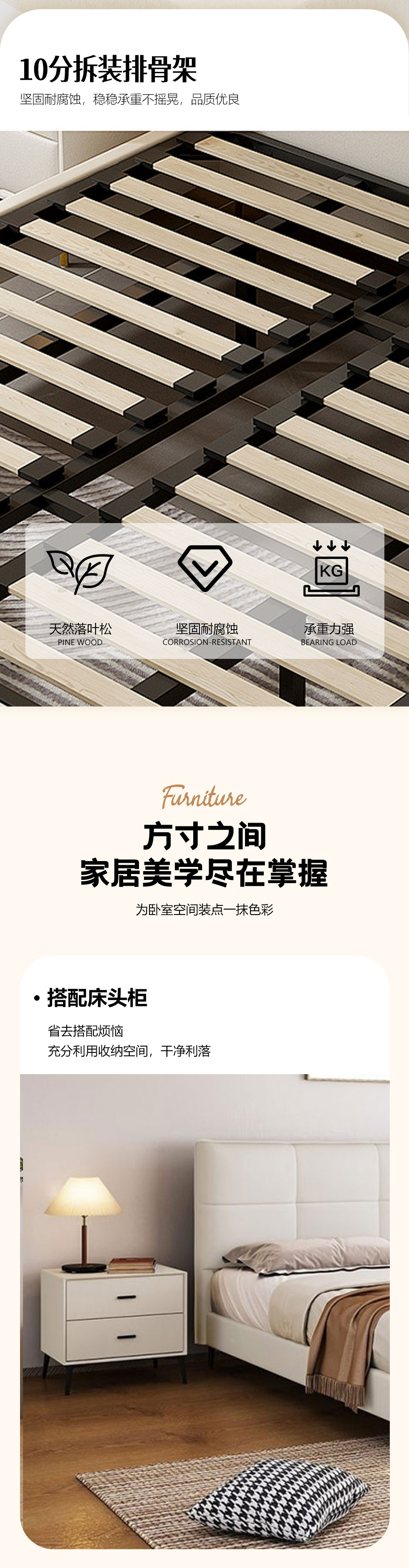 【套餐专享价】每屋优享系列 现代简约 进口落叶松+多层实木板+10分拆装排骨架+接触面生态皮+高密度海绵靠包+碳素钢脚 1.8米床