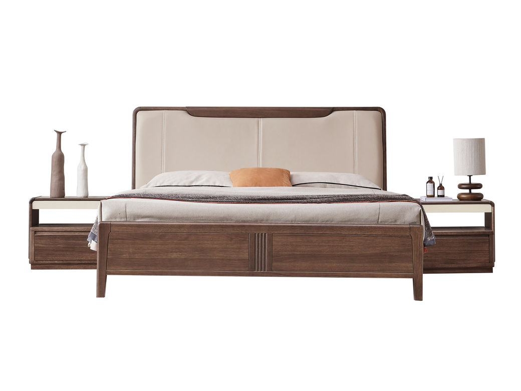 匠心 中式 榄仁木+实木多层板+生态真皮 1.8米床¥2869