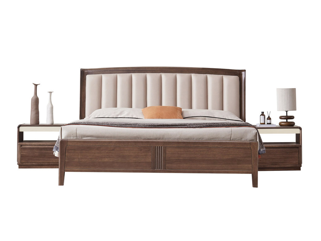 匠心 中式 榄仁木+实木多层板+科技布 1.8米床