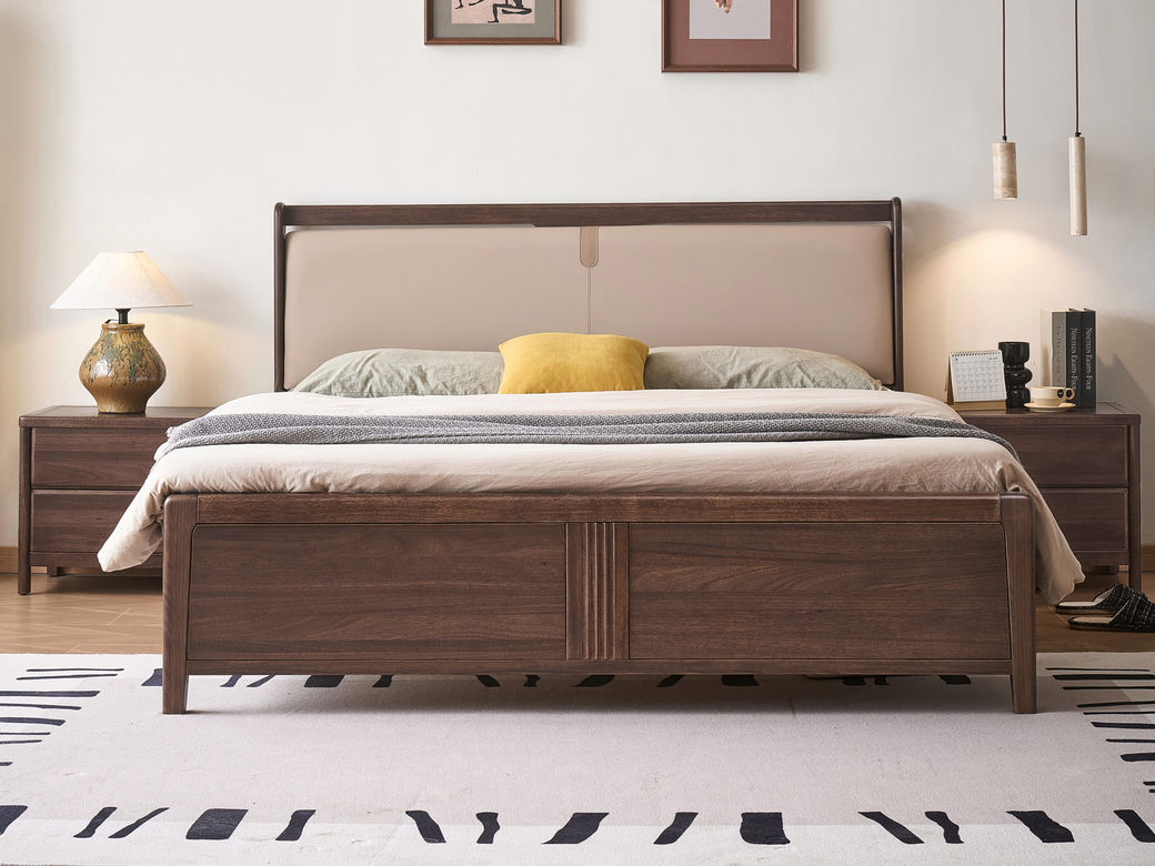匠心 中式 榄仁木+实木多层板+纳米去污皮 1.5米床
