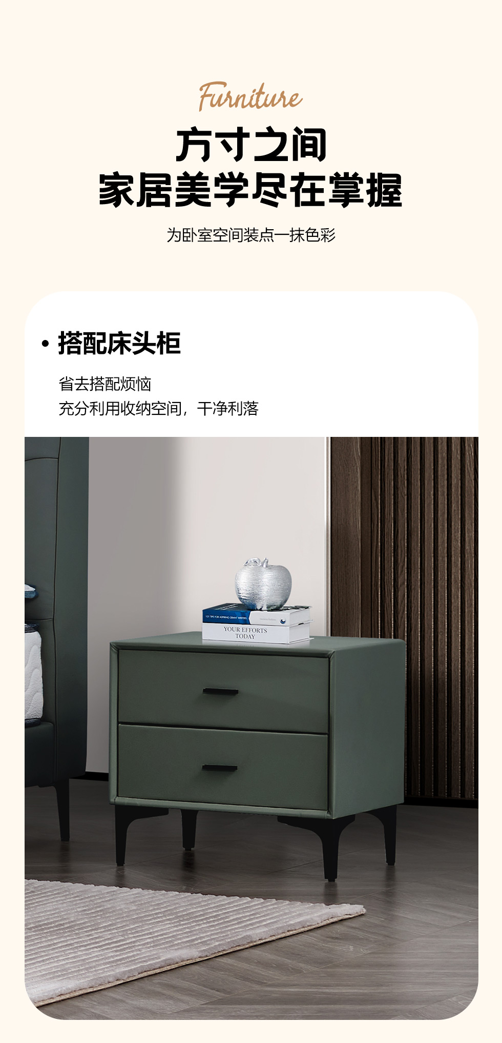 【套餐专享价】每屋优享系列 现代简约 进口落叶松+多层实木板+10分钢木排骨架+接触面真皮+高密度海绵靠包+碳素钢脚 1.8米床+2个床头柜【套餐专享价】每屋优享系列 现代简约 进口落叶松+多层实木板+10分钢木排骨架+接触面真皮+高密度海绵靠包+碳素钢脚 1.8米床+2个床头柜