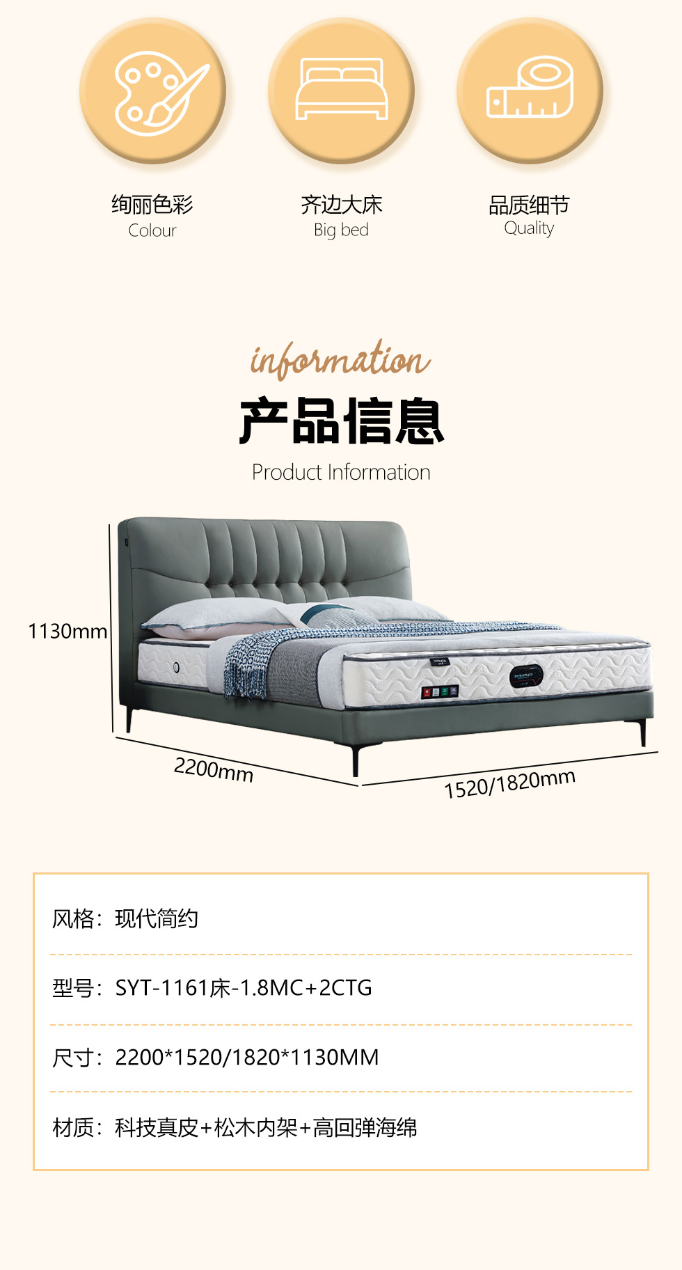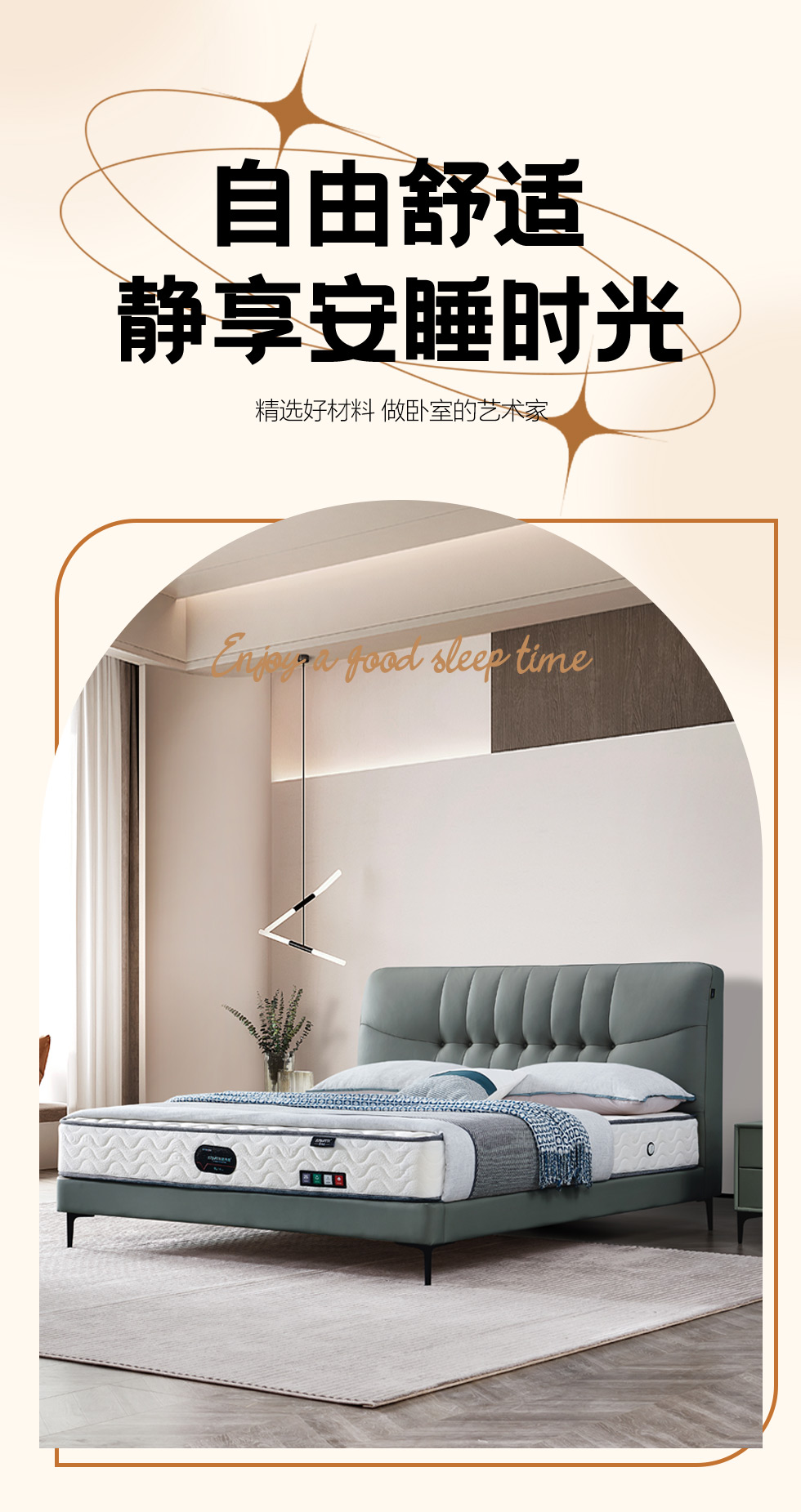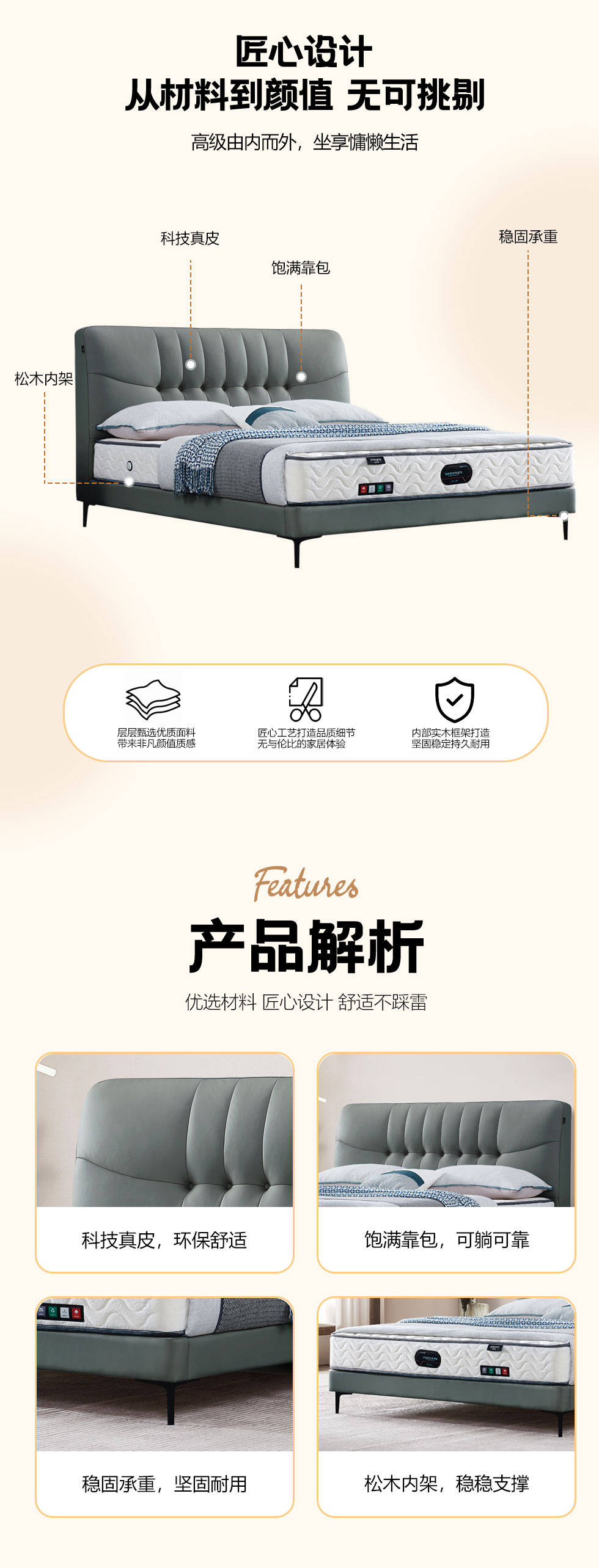 【套餐专享价】每屋优享系列 现代简约 松木内架+高回弹海绵+科技真皮 1.8米床