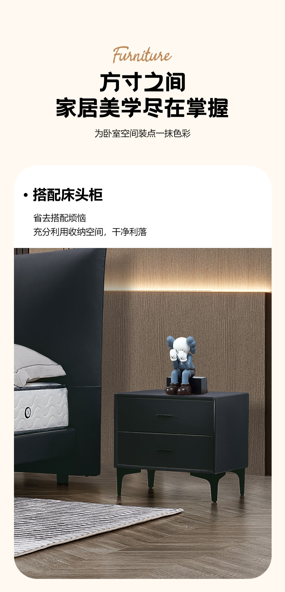 【套餐专享价】每屋优享系列 现代简约 实木内架+高回弹海绵+钢木排骨架+生态真皮+中纤板+仿皮+碳素钢脚 1.8米床+床头柜*2¥3168