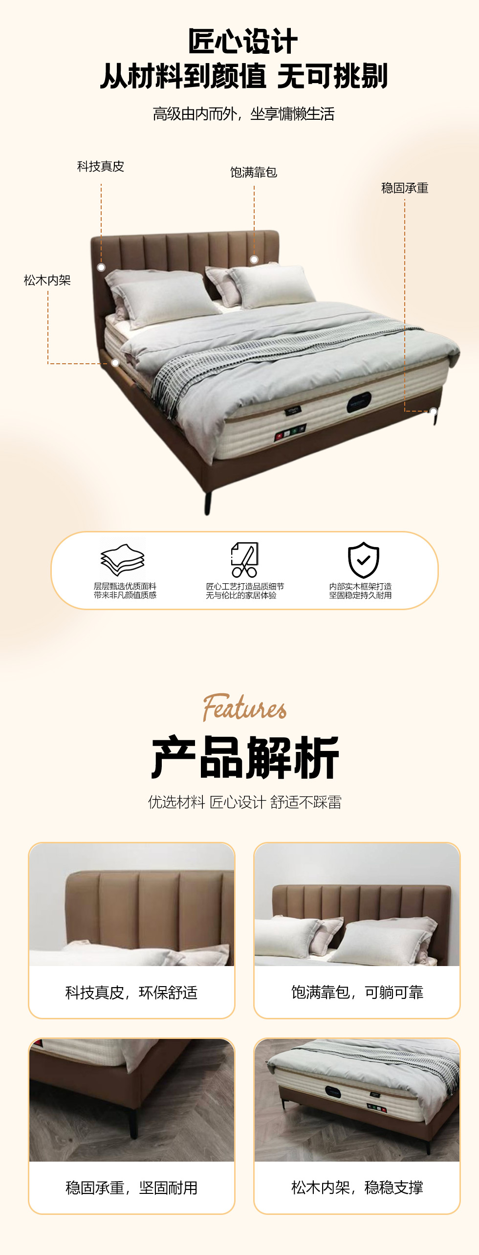 【套餐专享价】每屋优享系列 现代简约 进口落叶松+多层实木板+10分钢木排骨架+接触面真皮+高密度海绵靠包+碳素钢脚 1.8米床+2个床头柜【套餐专享价】每屋优享系列 现代简约 进口落叶松+多层实木板+10分钢木排骨架+接触面真皮+高密度海绵靠包+碳素钢脚 1.8米床+2个床头柜