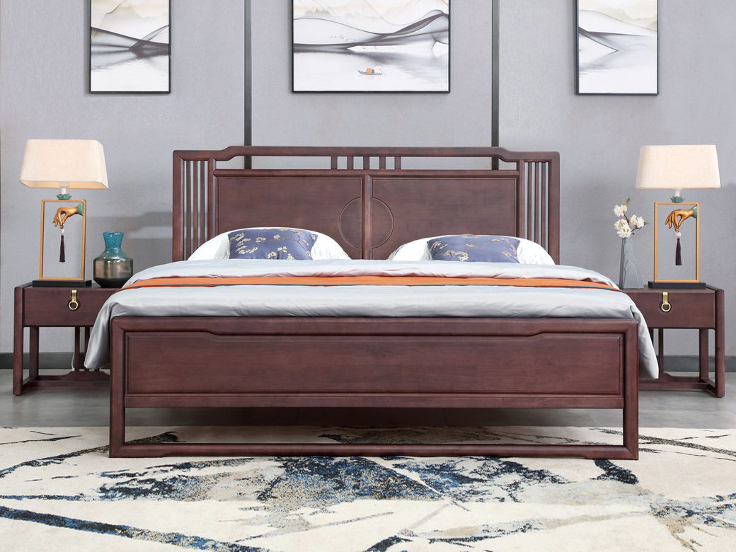 山止 新中式 橡胶木+松木 紫檀色 1.8M床