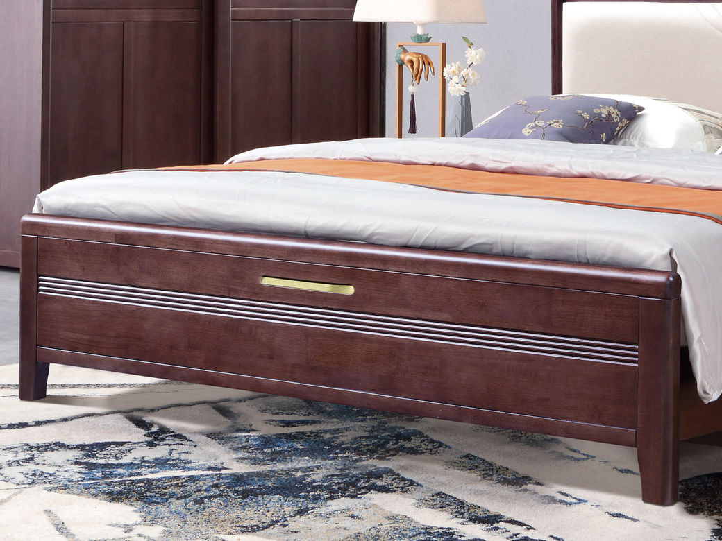 山止 新中式 橡胶木+松木 紫檀色 1.8M床