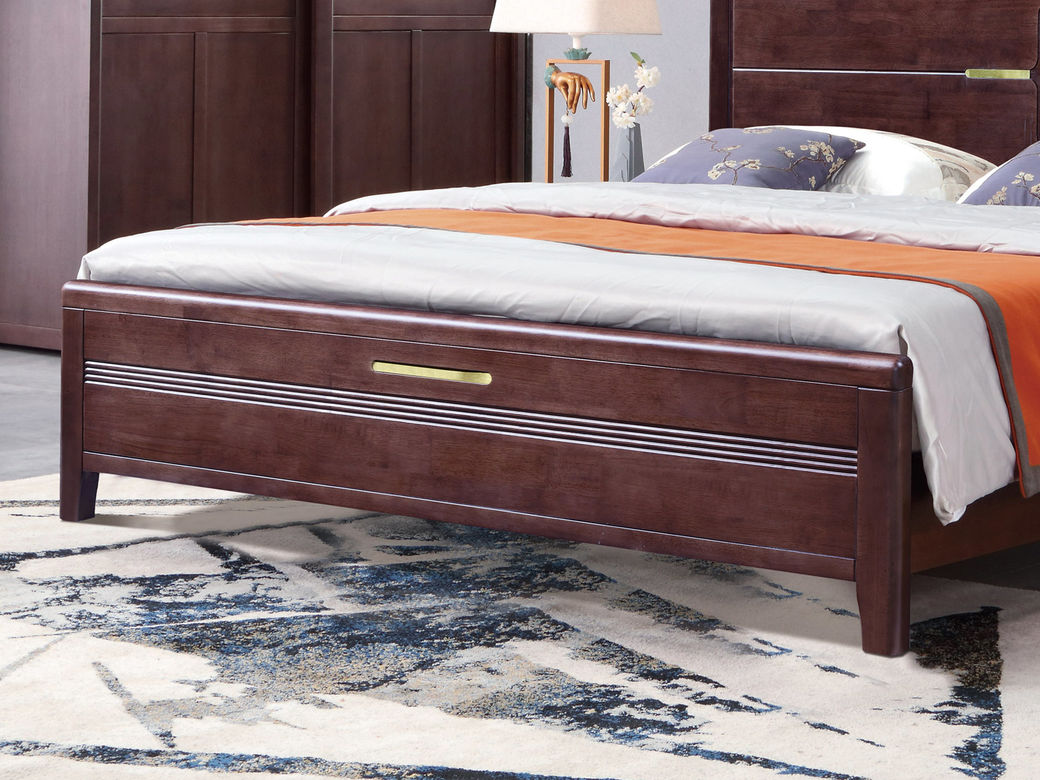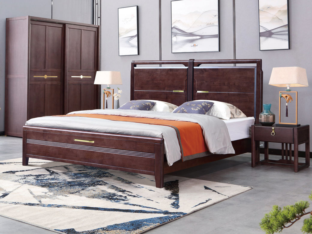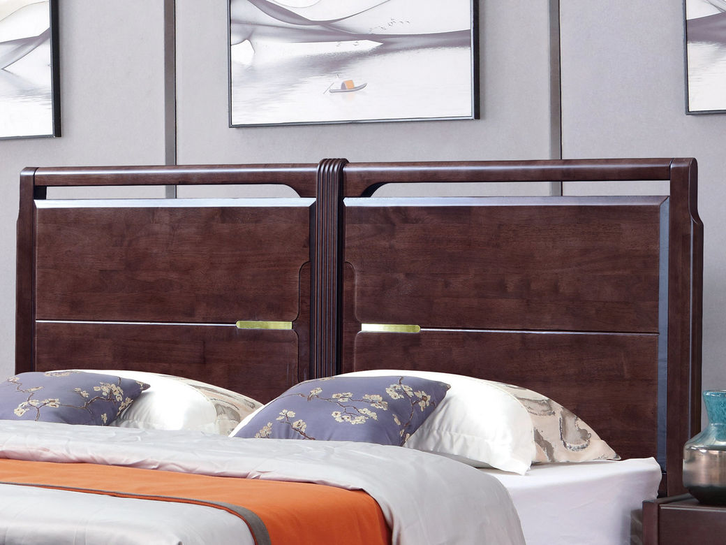 山止 新中式 橡胶木+松木 紫檀色 1.8M床