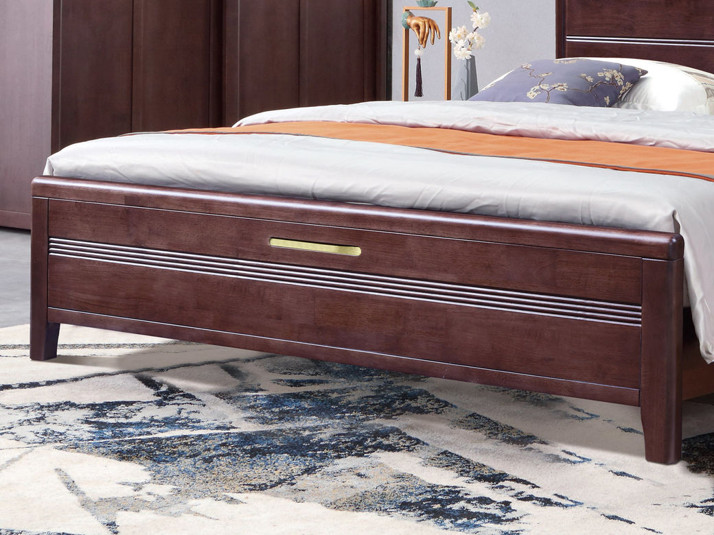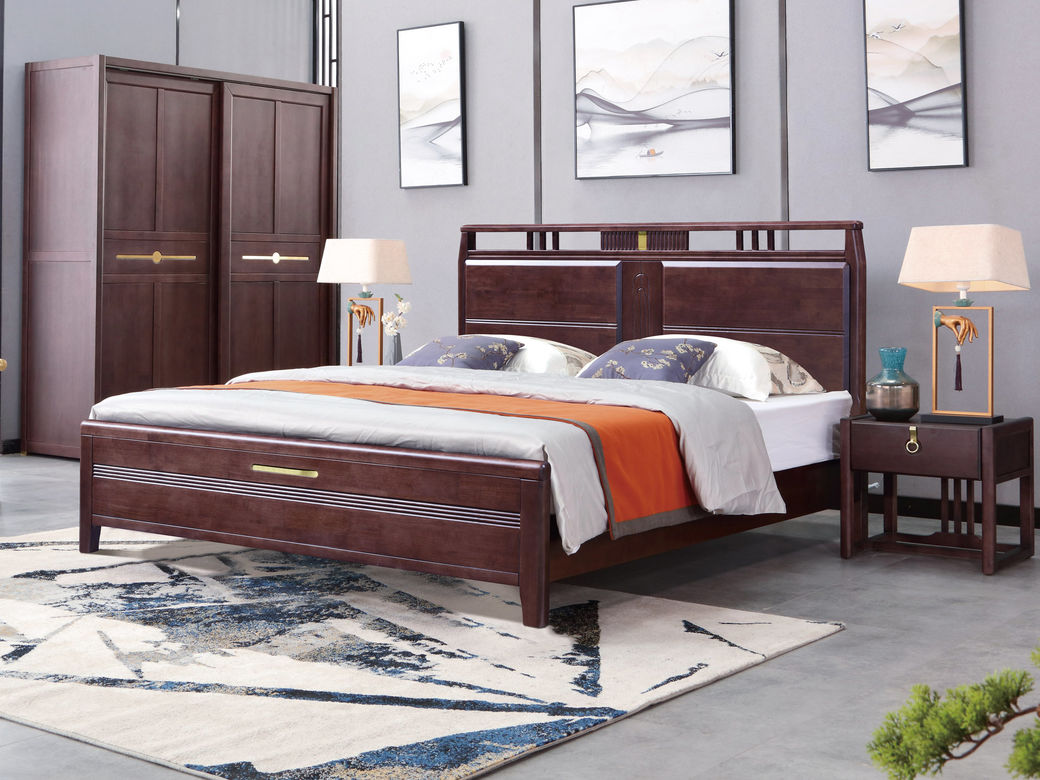 山止 新中式 橡胶木+松木 紫檀色 1.8M床