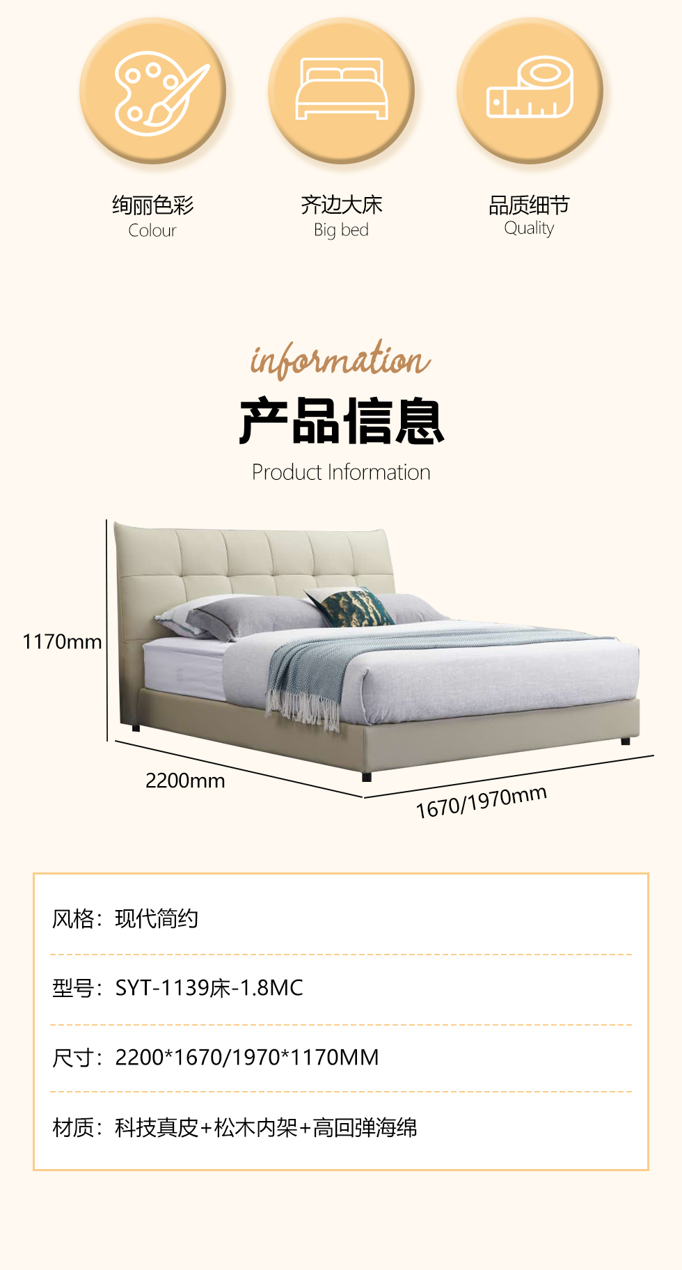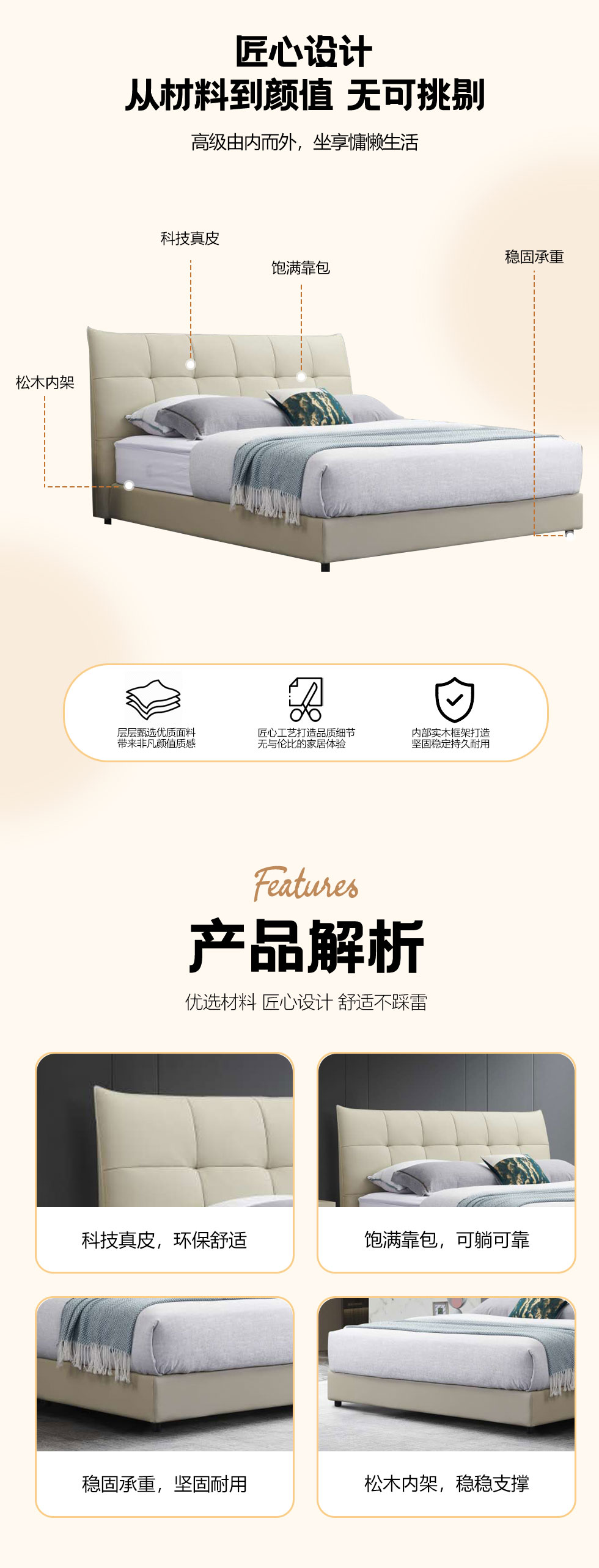 【套餐专享价】每屋优享系列 现代简约 进口落叶松+多层实木板+10分钢木排骨架+接触面真皮+高密度海绵靠包+碳素钢脚 1.8米床+2个床头柜【套餐专享价】每屋优享系列 现代简约 进口落叶松+多层实木板+10分钢木排骨架+接触面真皮+高密度海绵靠包+碳素钢脚 1.8米床+2个床头柜