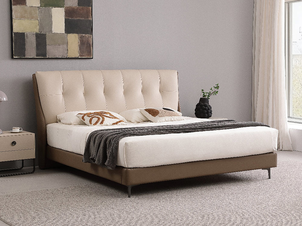 A系优选 现代简约 接触面头层牛皮+仿皮+实木框架+高回弹海绵+10分钢木排骨架 1.8米皮床