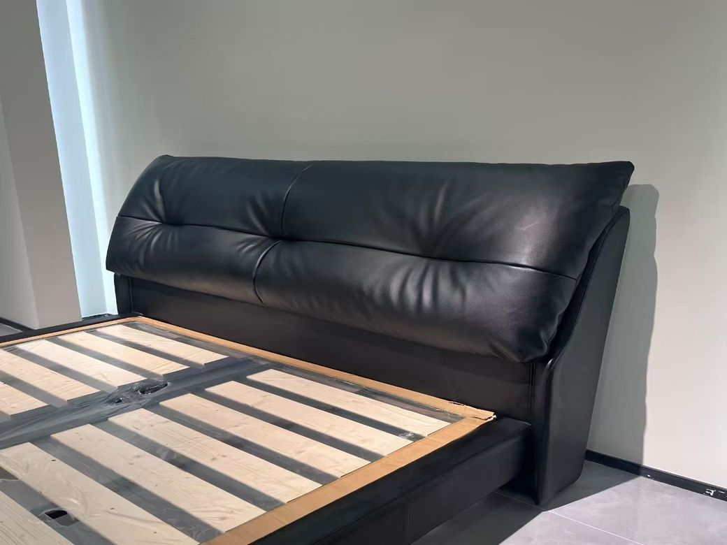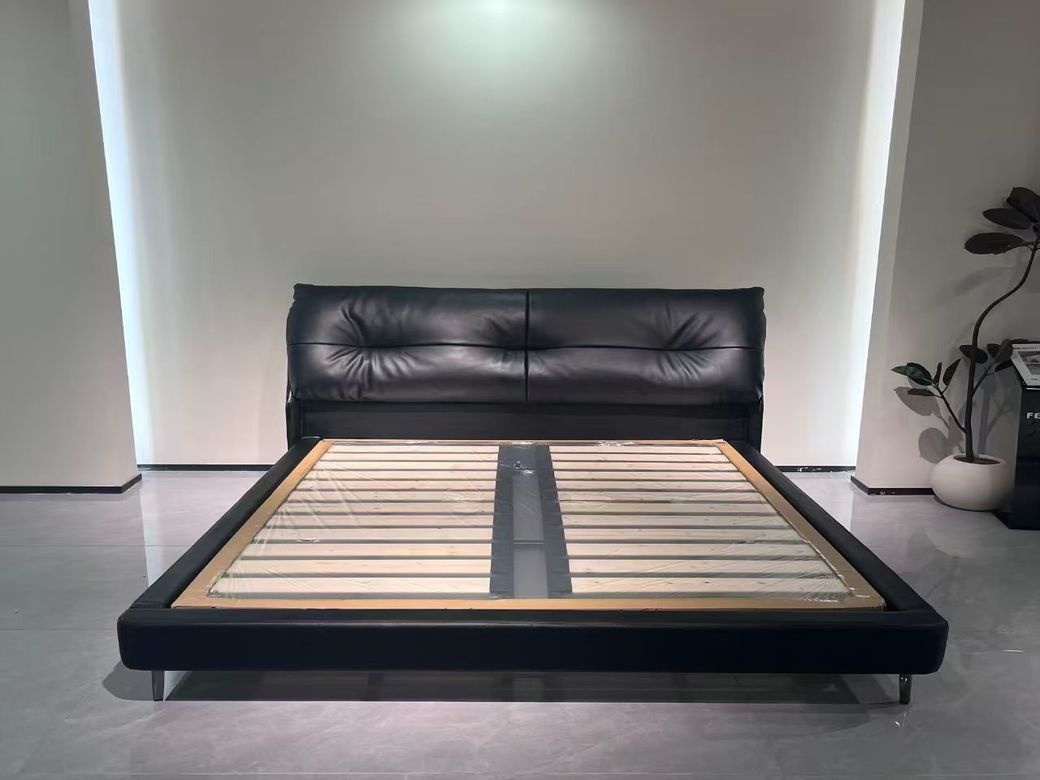 A系优选 现代简约 接触面头层牛皮+仿皮+实木框架+10公分钢木排骨架+黑色床脚+松木+黑色角码 1.5床¥2819