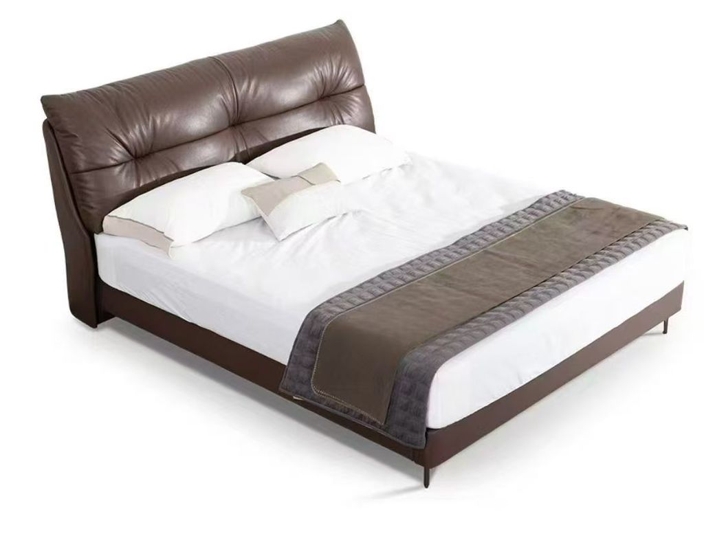 A系优选 现代简约 接触面进口头层黄牛皮+高回弹海绵+实木+10分排骨架+合金刚脚 浅棕色 1.8米床(不可定制高箱)