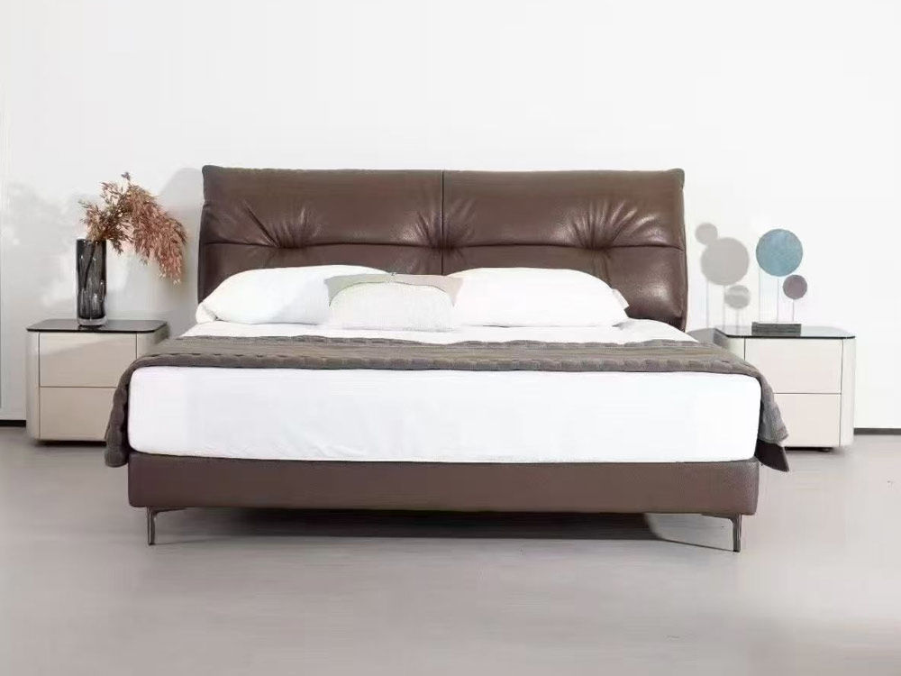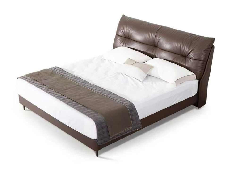 A系优选 现代简约 接触面头层牛皮+仿皮+实木框架+高回弹海绵+10分钢木排骨架 1.5米床