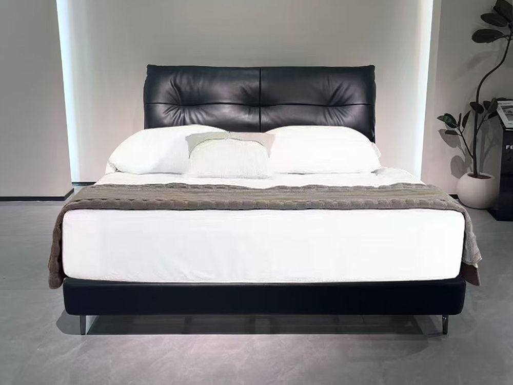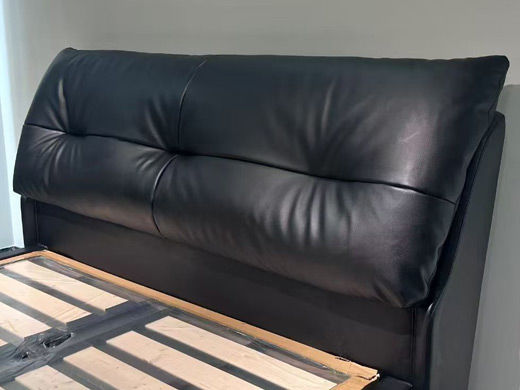 A系优选 现代简约 接触面头层牛皮+仿皮+实木框架+10公分钢木排骨架+黑色床脚+松木+黑色角码 1.5床¥2819
