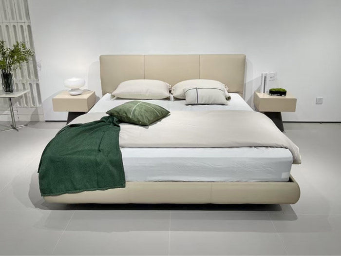 B系优选 现代简约 进口俄罗斯落叶松+羽丝+接触面头层牛皮 1.8米床