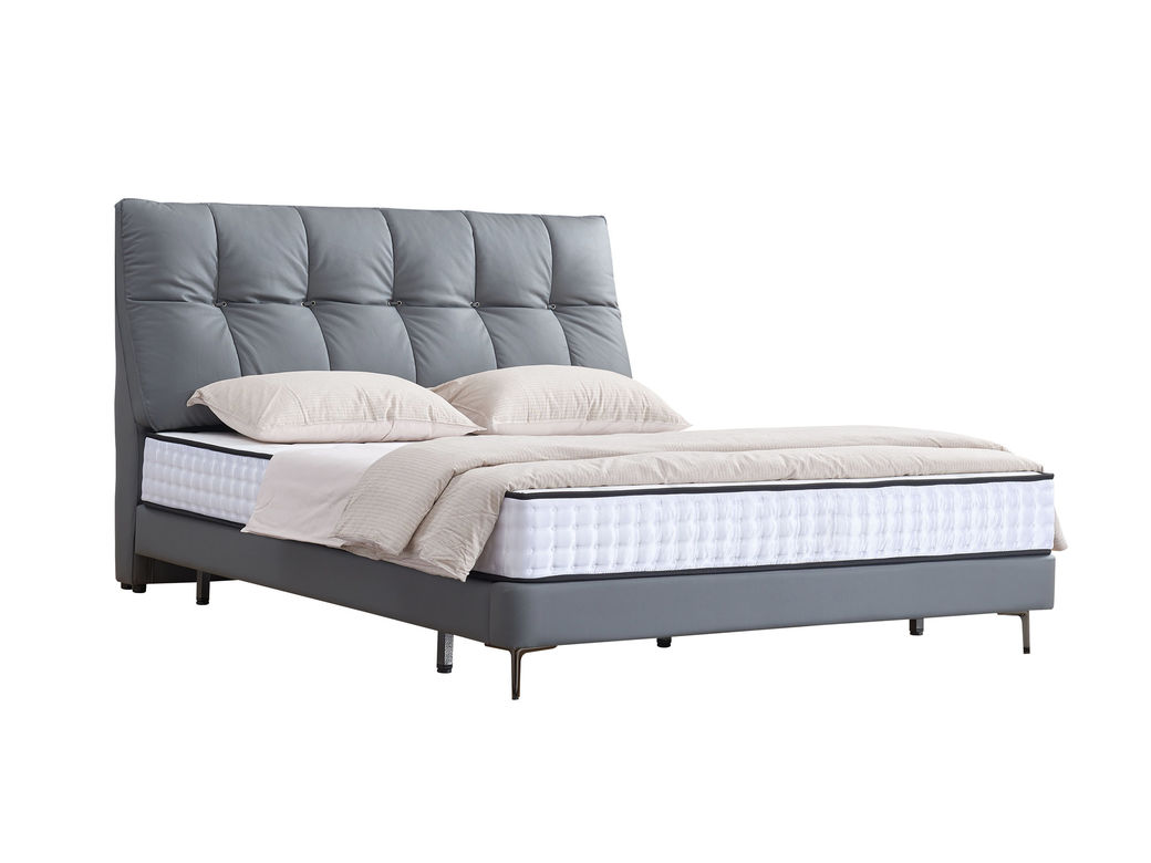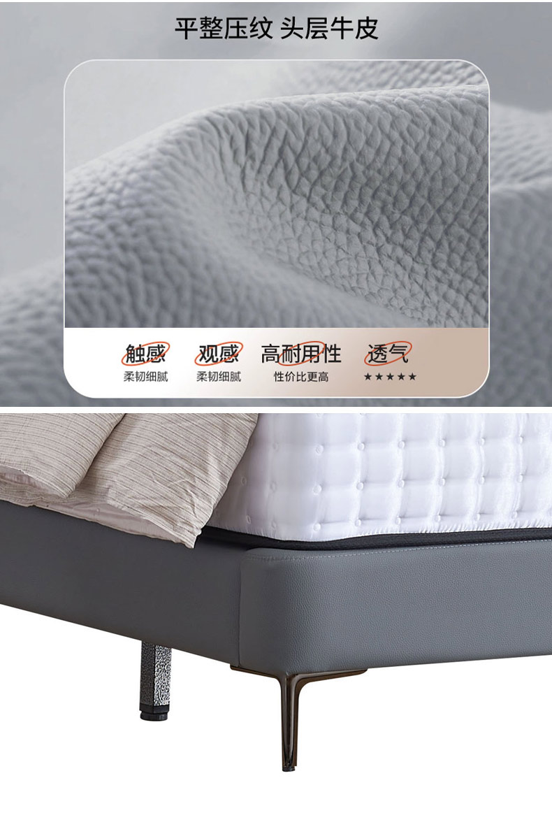 A系优选 现代简约 接触面头层牛皮+仿皮+高回弹海绵+实木框架+10分钢木排骨架 1.8米床