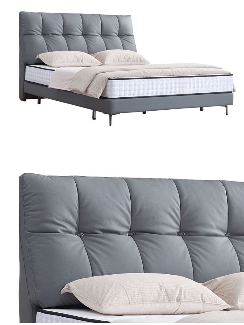 A系优选 现代简约 接触面头层牛皮+仿皮+高回弹海绵+实木框架+10分钢木排骨架 1.8米床