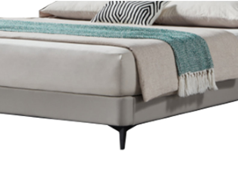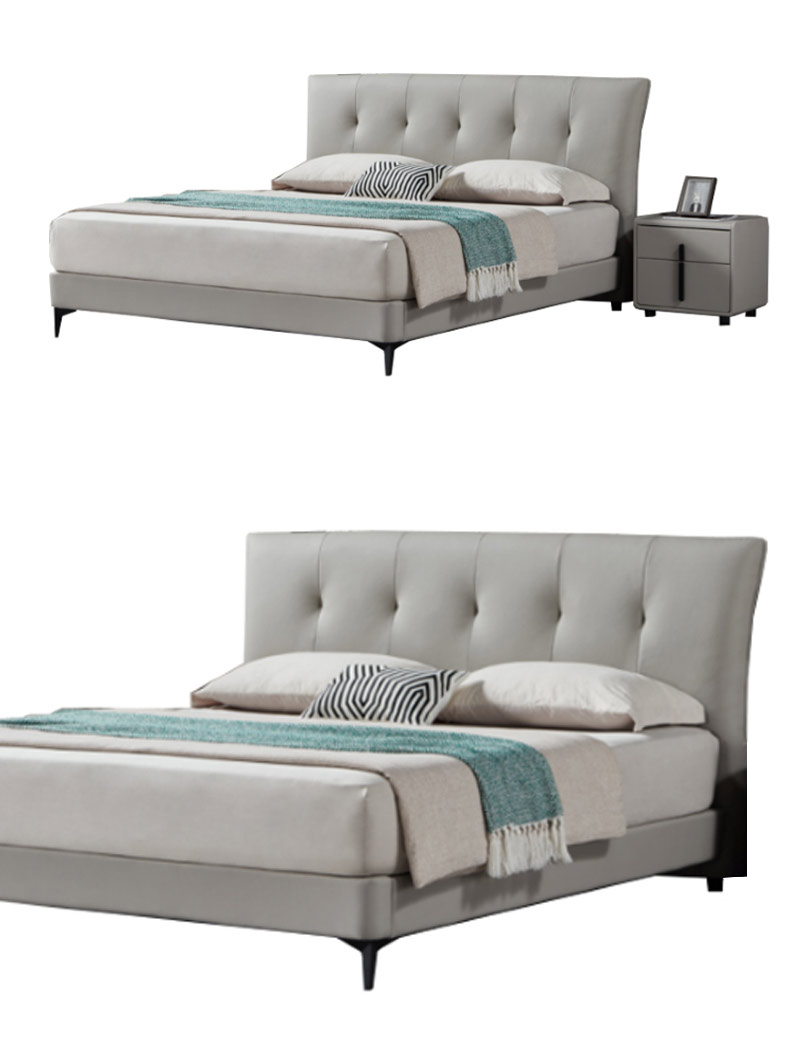 A系优选 现代简约 接触面头层牛皮真皮+实木框架+多层实木板+高回弹海绵+碳素钢五金脚+静音床板 深灰色 1.8米床(价格不含高箱,如需定制请咨询客服)