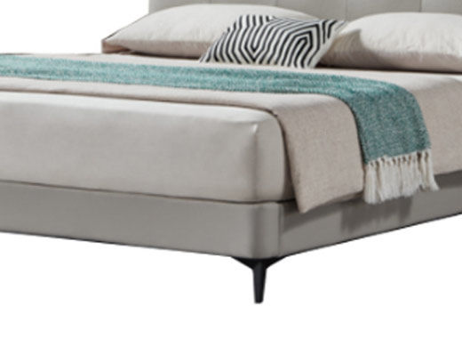B系优选 现代简约 接触面头层牛皮+仿皮+高回弹海绵+实木框架+10分钢木排骨架+白蜡木床边 1.8米床