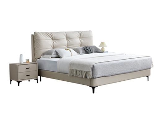 B系优选 现代简约 接触面头层牛皮+仿皮+高回弹海绵+实木框架+10分钢木排骨架+白蜡木床边 1.8米床