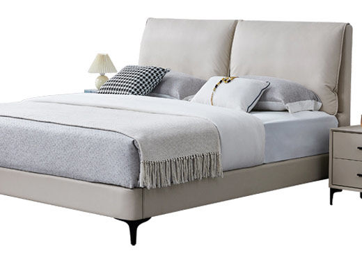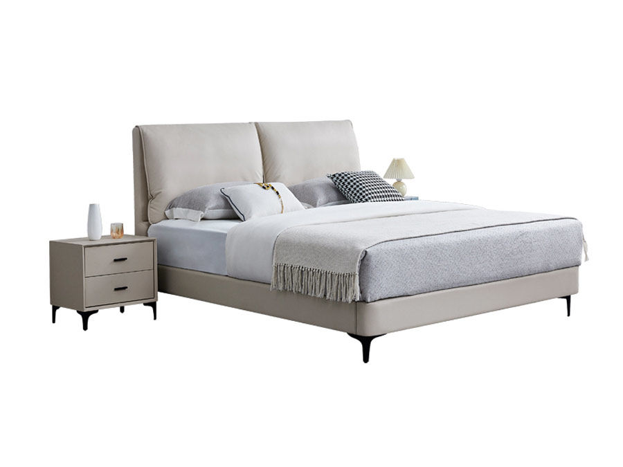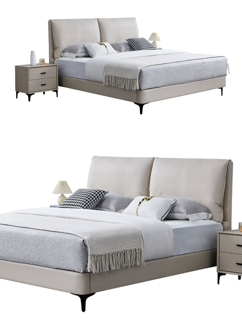 B系优选 现代简约 接触面头层牛皮+仿皮+高回弹海绵+实木框架+10分钢木排骨架+白蜡木床边 1.8米床
