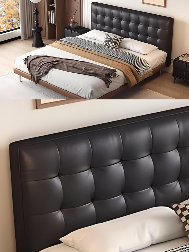 A系优选 现代简约 接触面头层牛皮真皮+实木框架+多层实木板+高回弹海绵+碳素钢五金脚+静音床板 深灰色 1.8米床(价格不含高箱,如需定制请咨询客服)