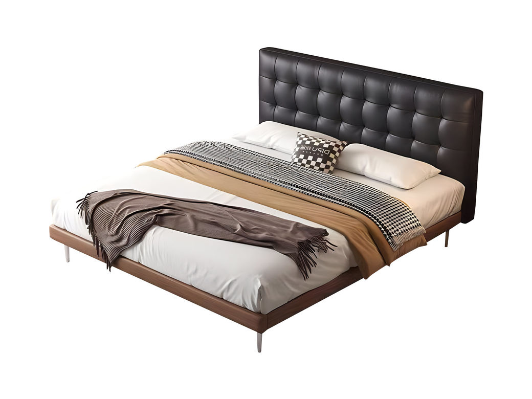 B系优选 中古风 接触面头层牛皮+仿皮+高回弹海绵+实木框架+10分钢木排骨架+白蜡木床边 1.5米床