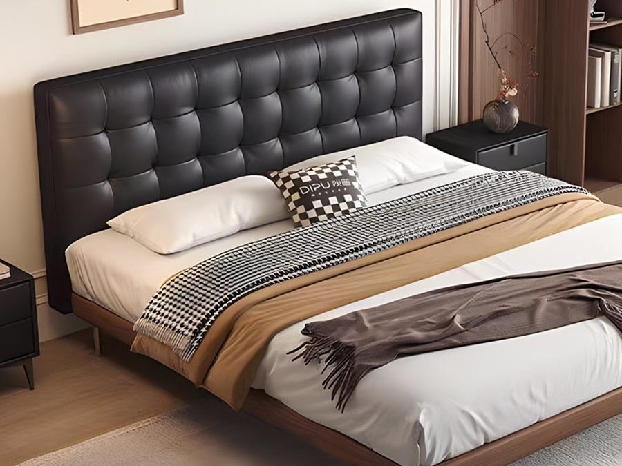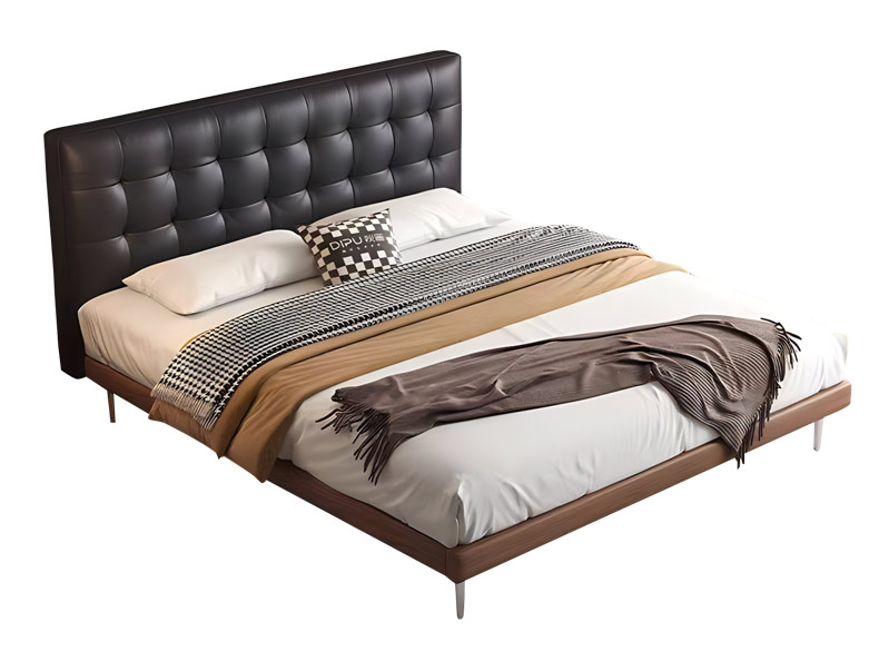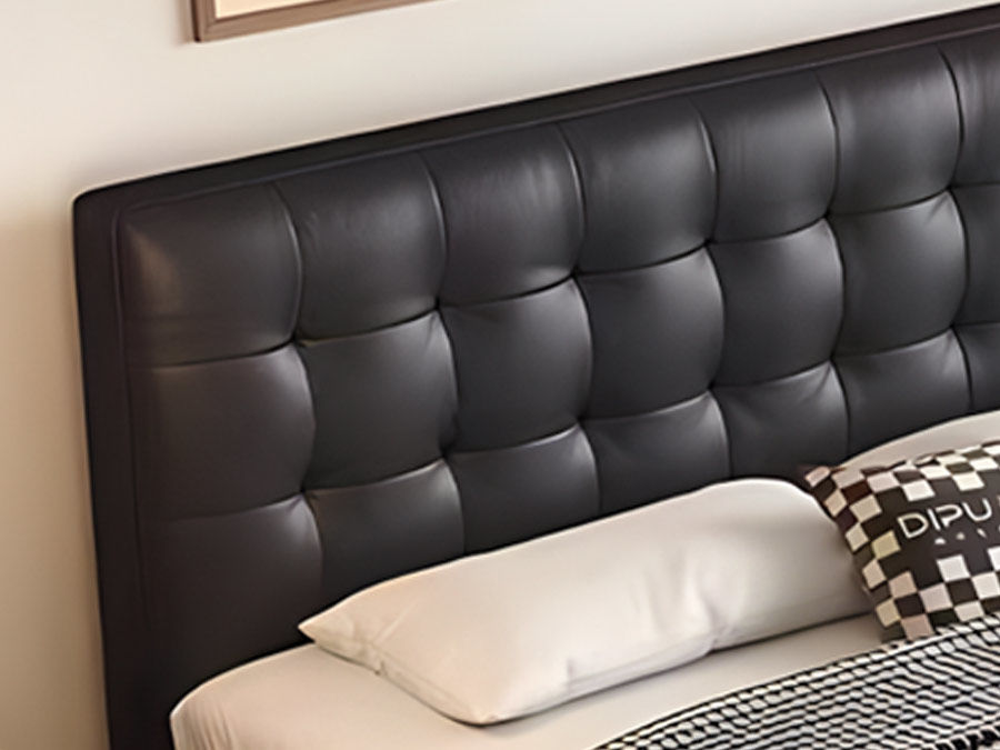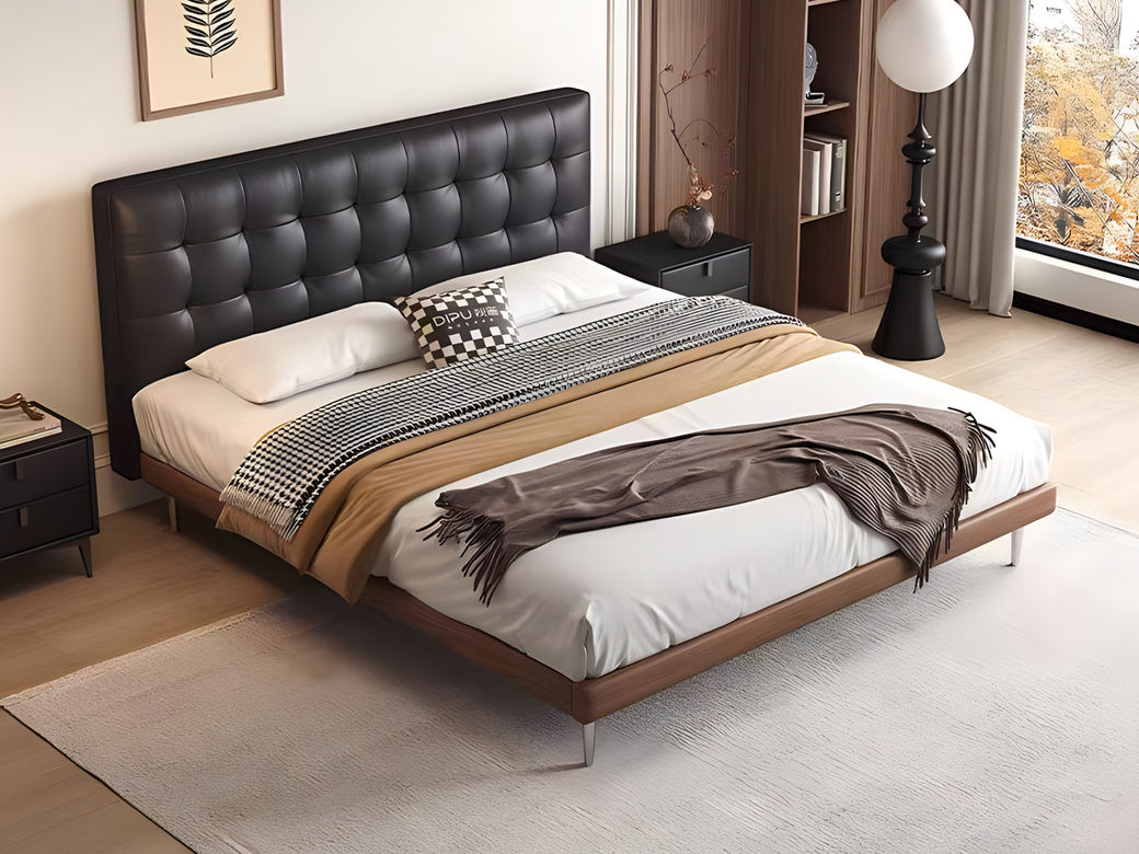 B系优选 中古风 接触面头层牛皮+仿皮+高回弹海绵+实木框架+10分钢木排骨架+白蜡木床边 1.8米床 |