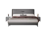A系优选 现代简约 接触面头层牛皮真皮+实木框架+多层实木板+高回弹海绵+碳素钢五金脚+静音床板 深灰色 1.8米床(价格不含高箱,如需定制请咨询客服)