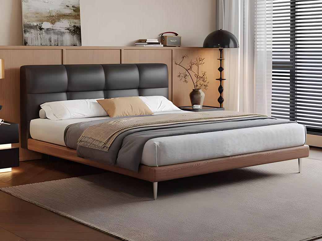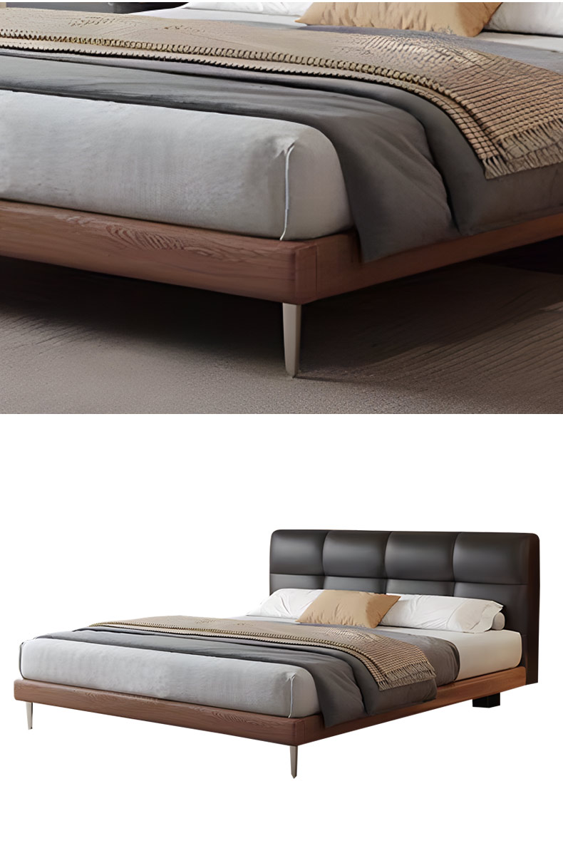 B系优选 现代简约 接触面头层牛皮+仿皮+高回弹海绵+实木框架+10分钢木排骨架+白蜡木床边 1.8米床¥5126