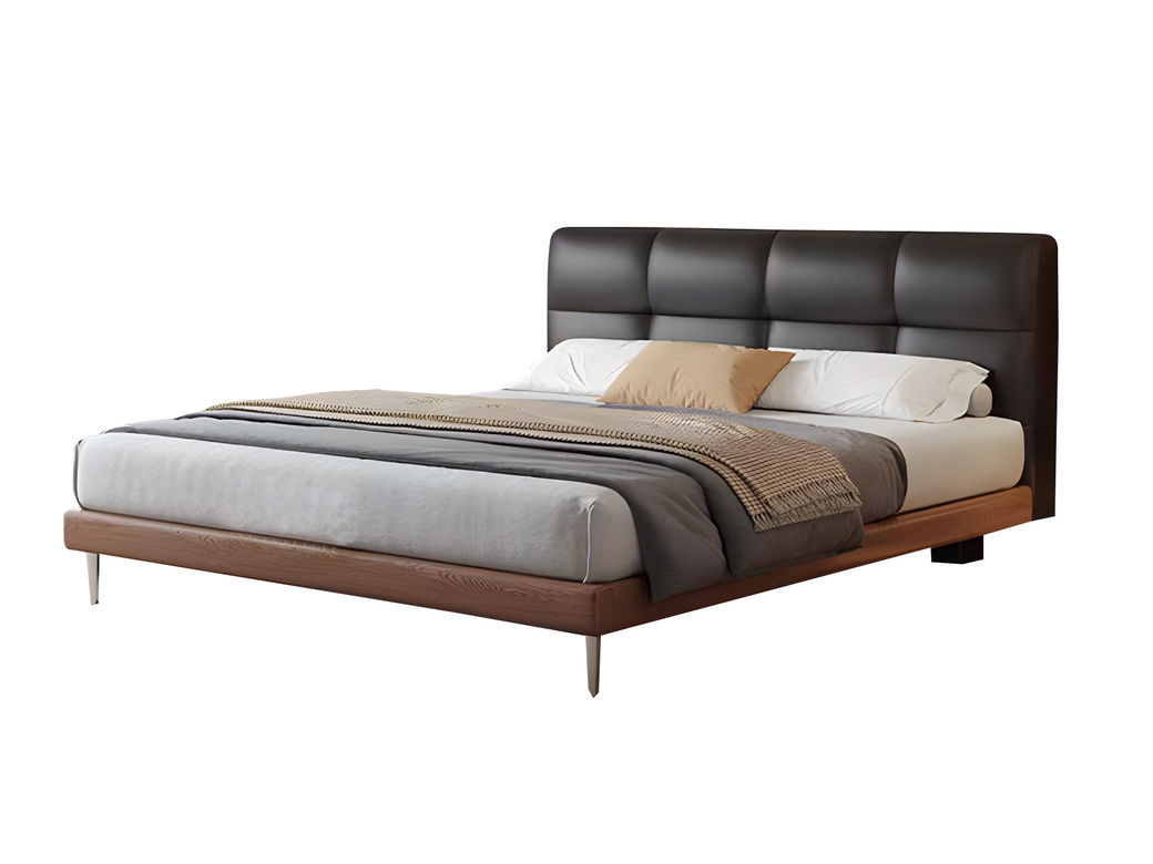 A系优选 现代简约 接触面头层牛皮真皮+实木框架+多层实木板+高回弹海绵+碳素钢五金脚+静音床板 深灰色 1.8米床(价格不含高箱,如需定制请咨询客服)