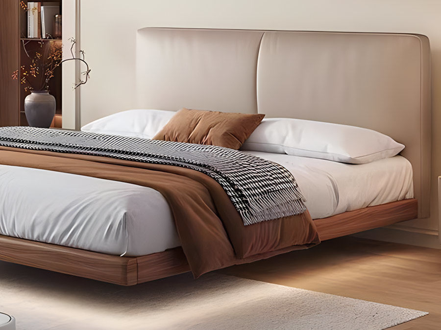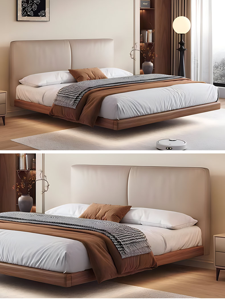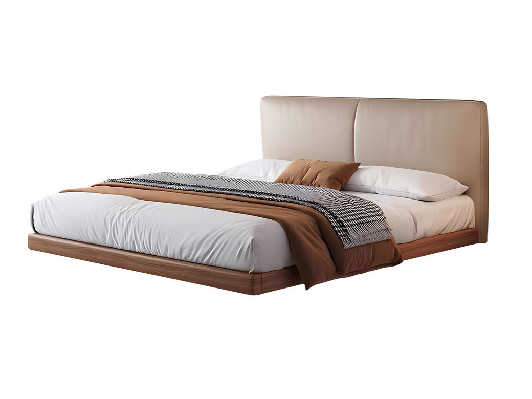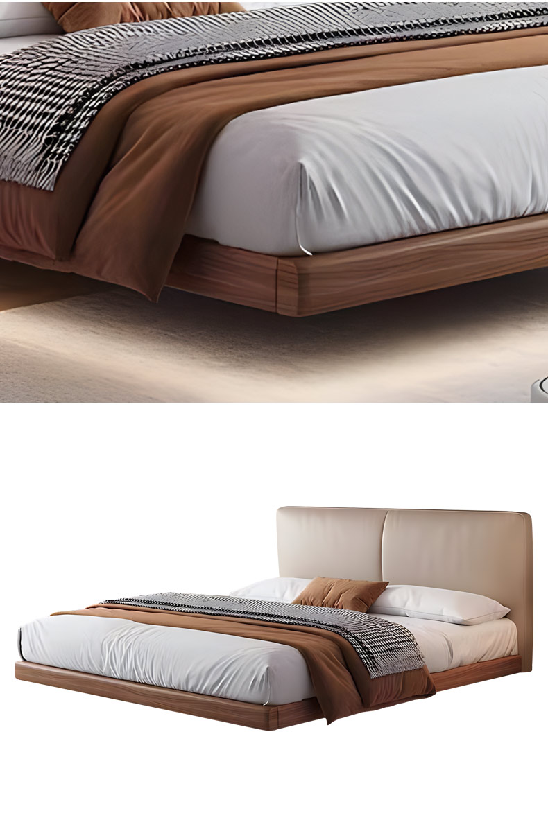 B系优选 中古风 接触面头层牛皮+仿皮+高回弹海绵+实木框架+10分钢木排骨架+白蜡木床边 1.8米床