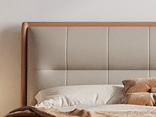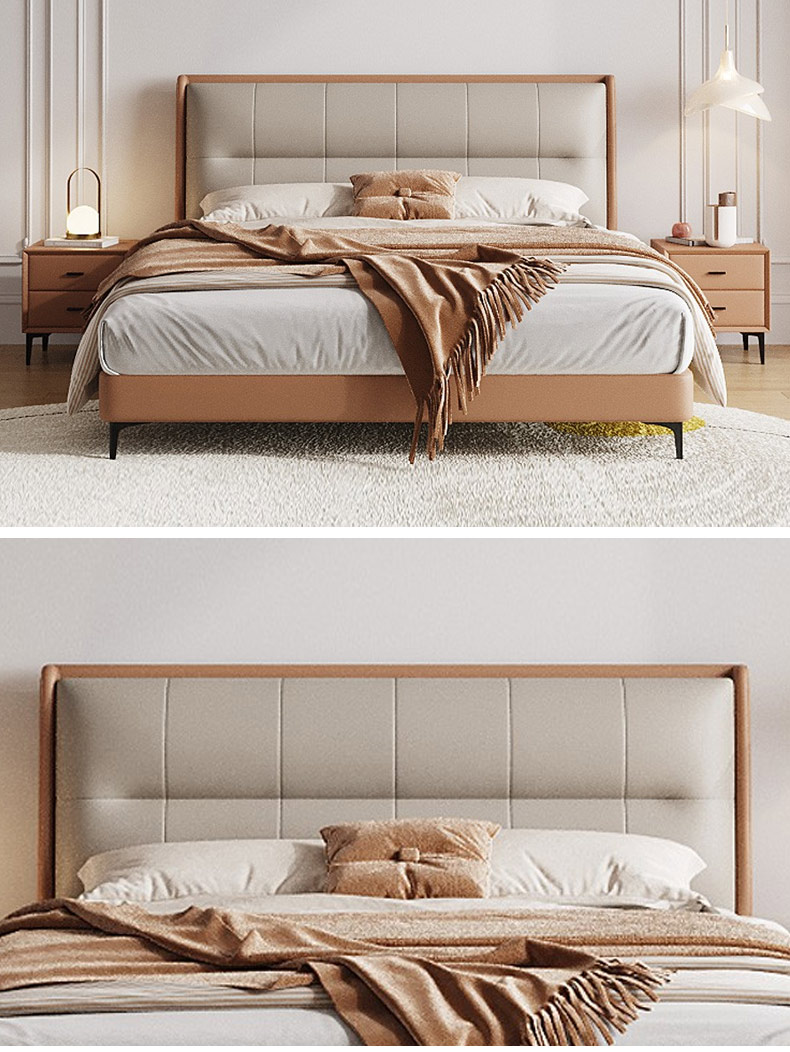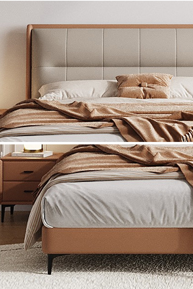 【套餐专享价】每屋优享系列 现代简约 接触面头层牛皮+仿皮+实木框架+钢木排骨架+胶脚 床头柜平面拉手/5分胶脚1.8米床+2床头柜¥3168