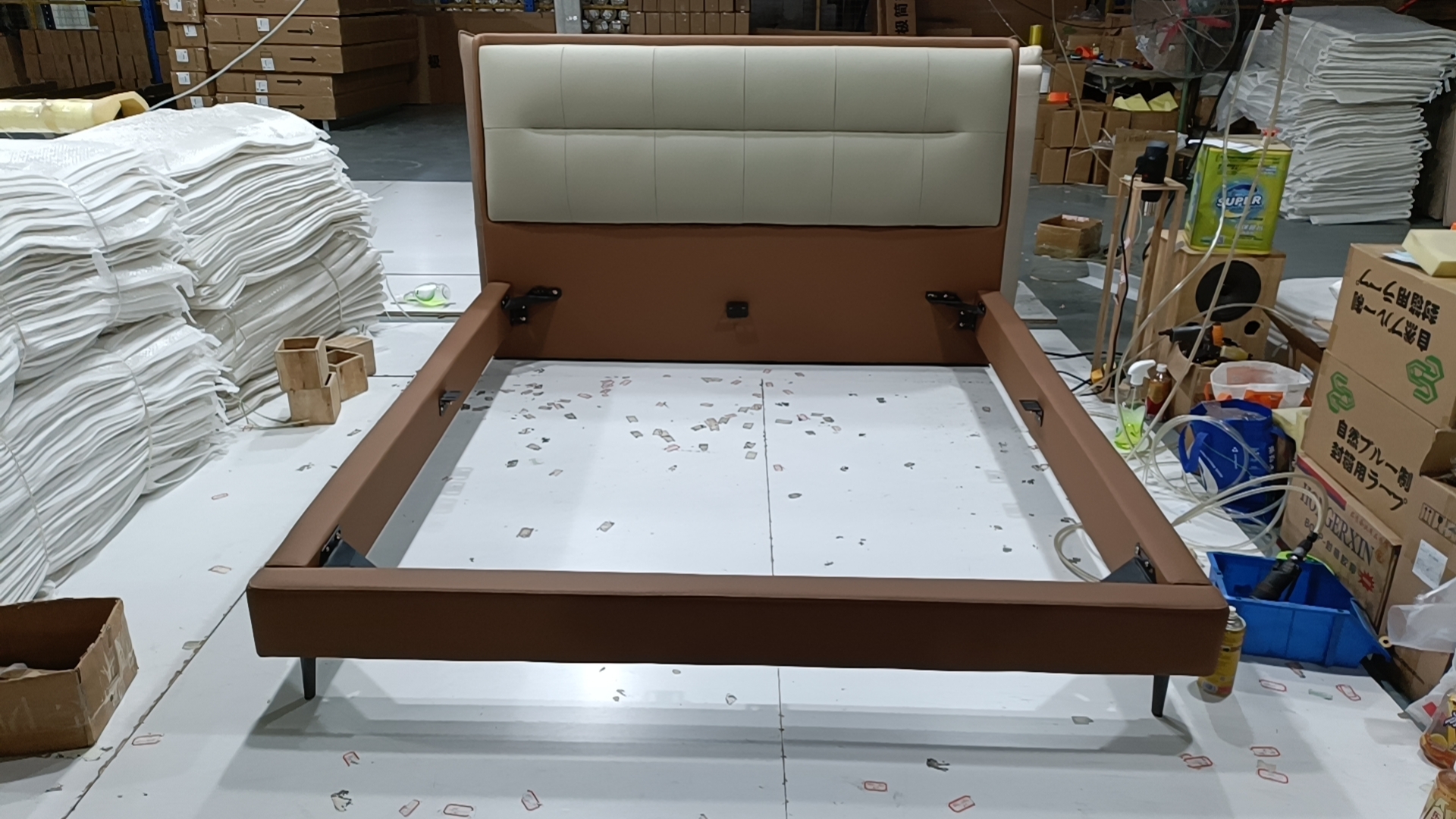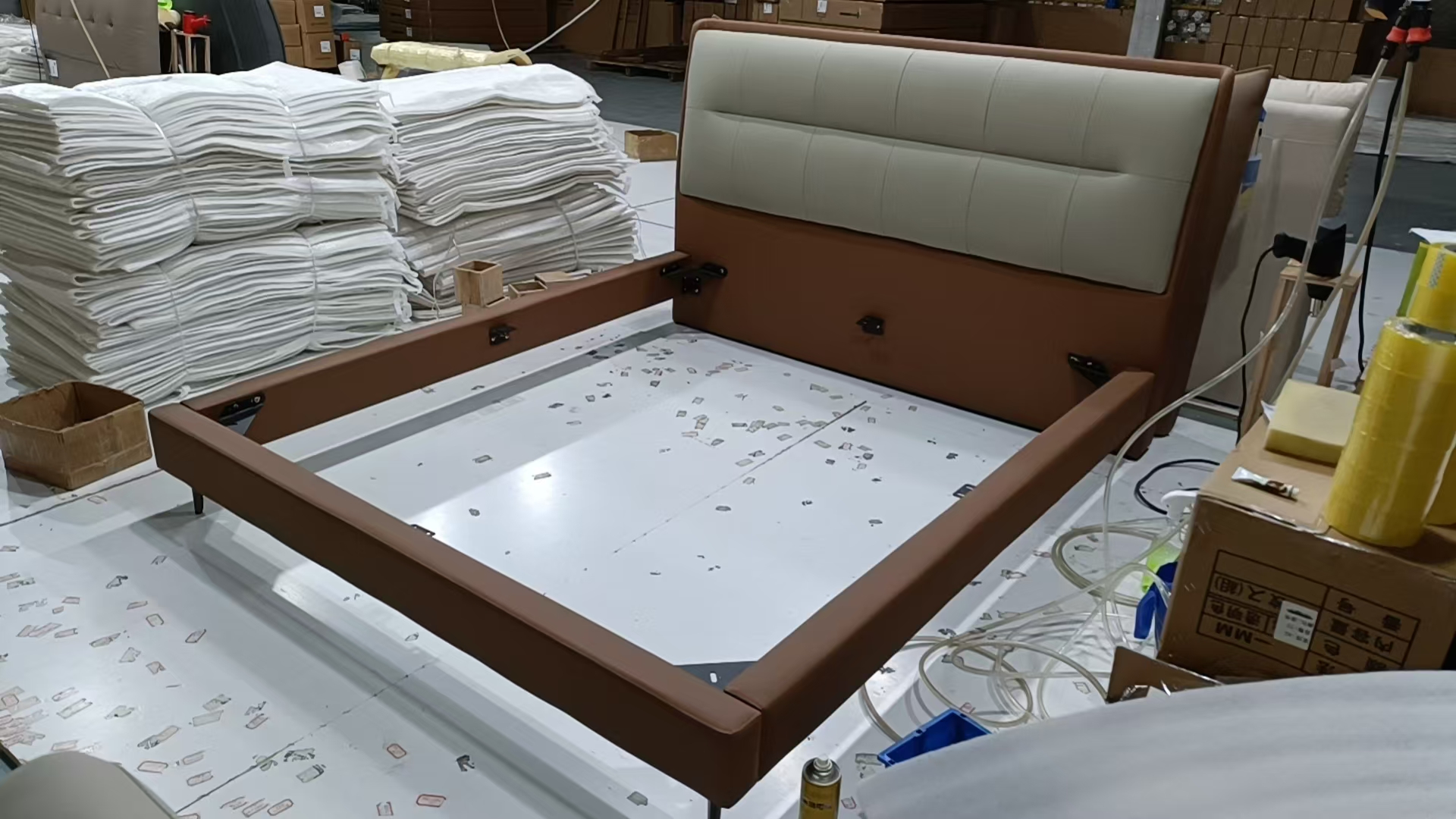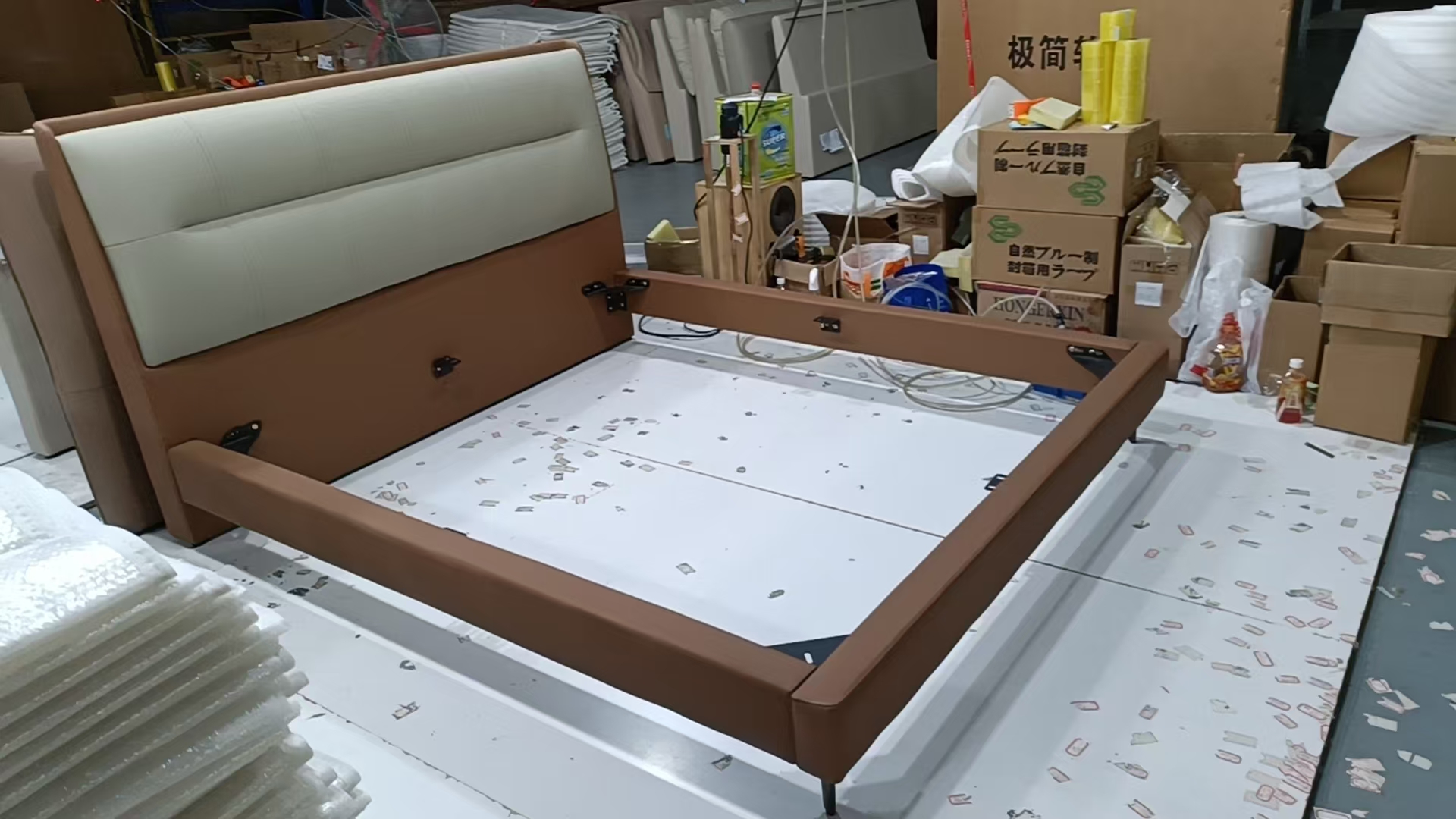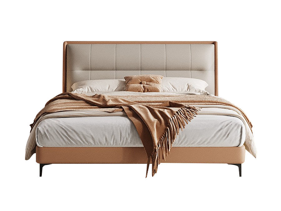 【套餐专享价】每屋优享系列 接触面头层牛皮+仿皮+实木框架+10公分钢木排骨架+黑色床脚+黑色角码 1.8床