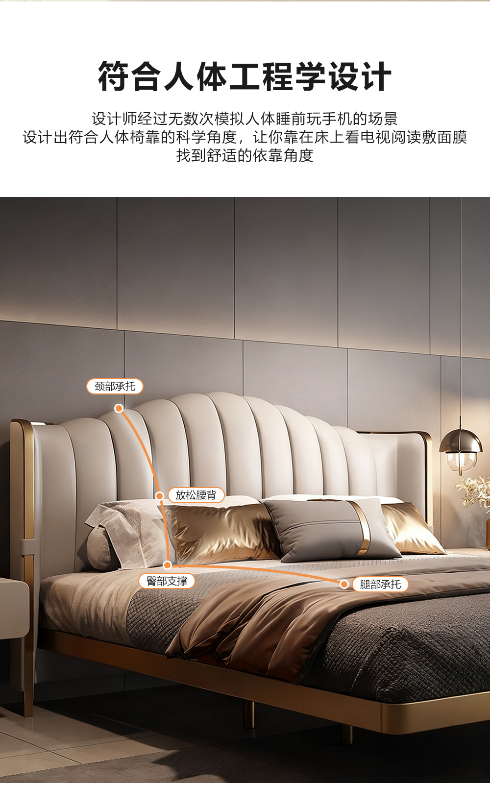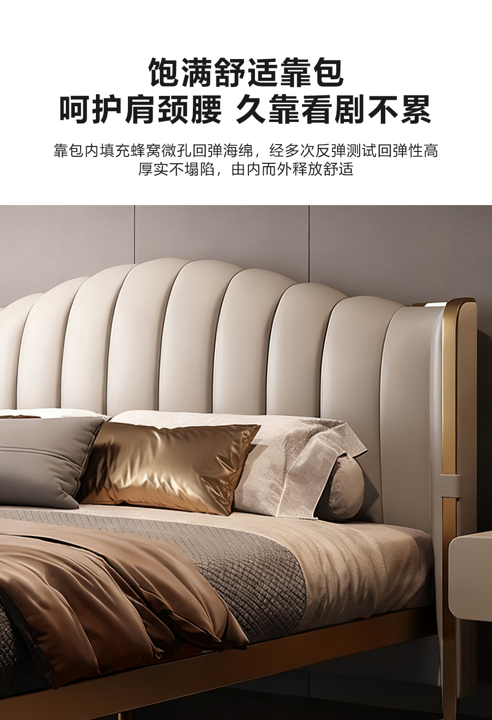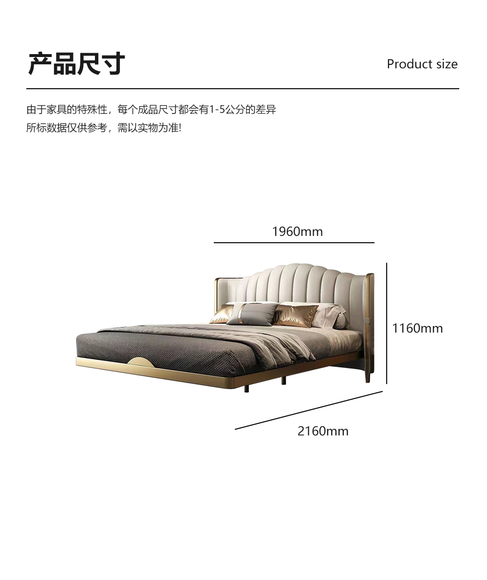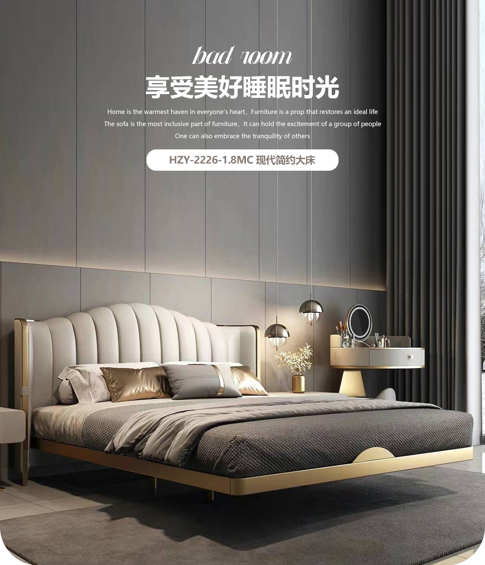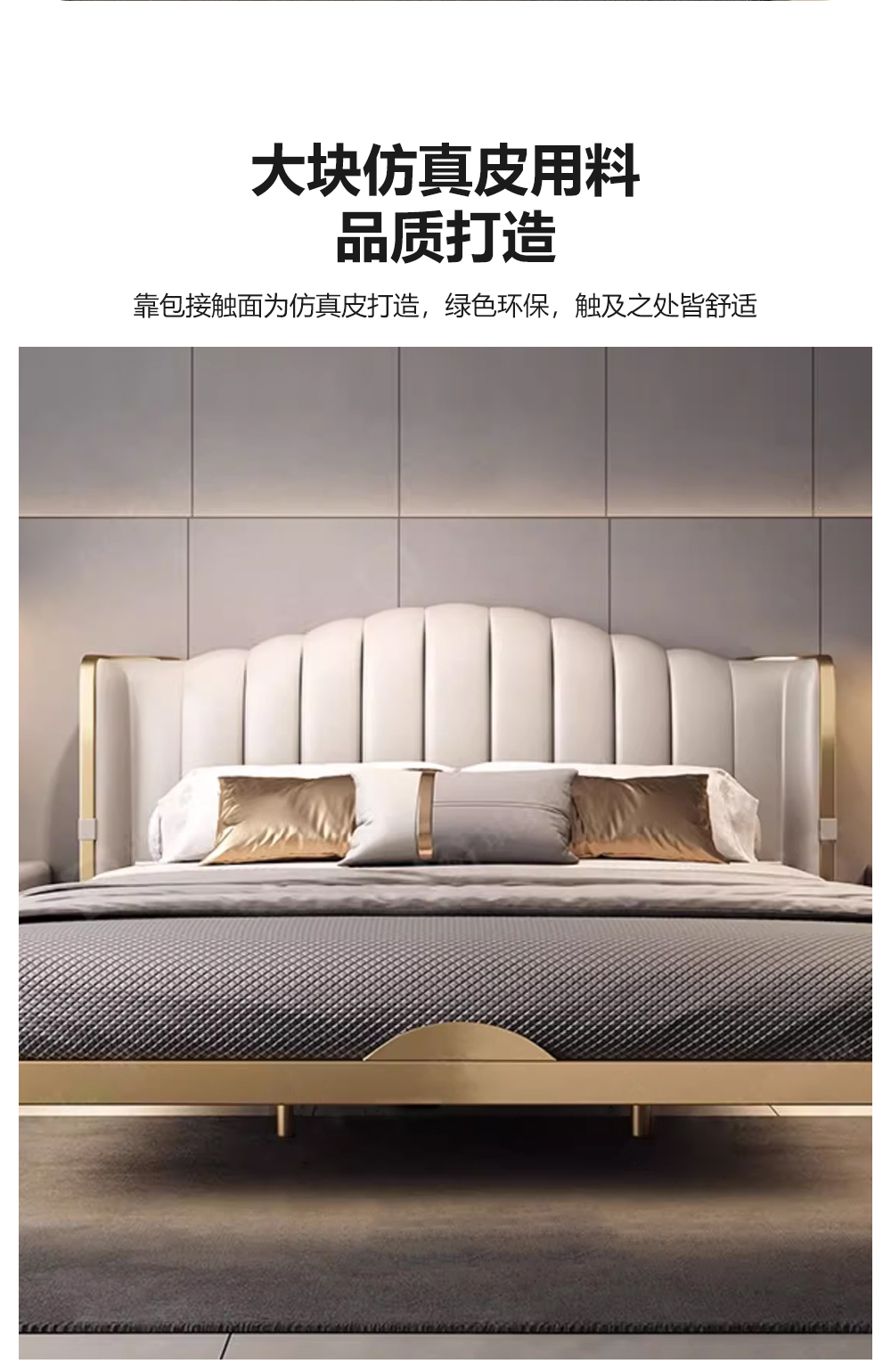 小红书系列 现代简约 实木框架+高回弹海绵+铜色不锈钢五金+仿真皮+仿皮 1.8米床