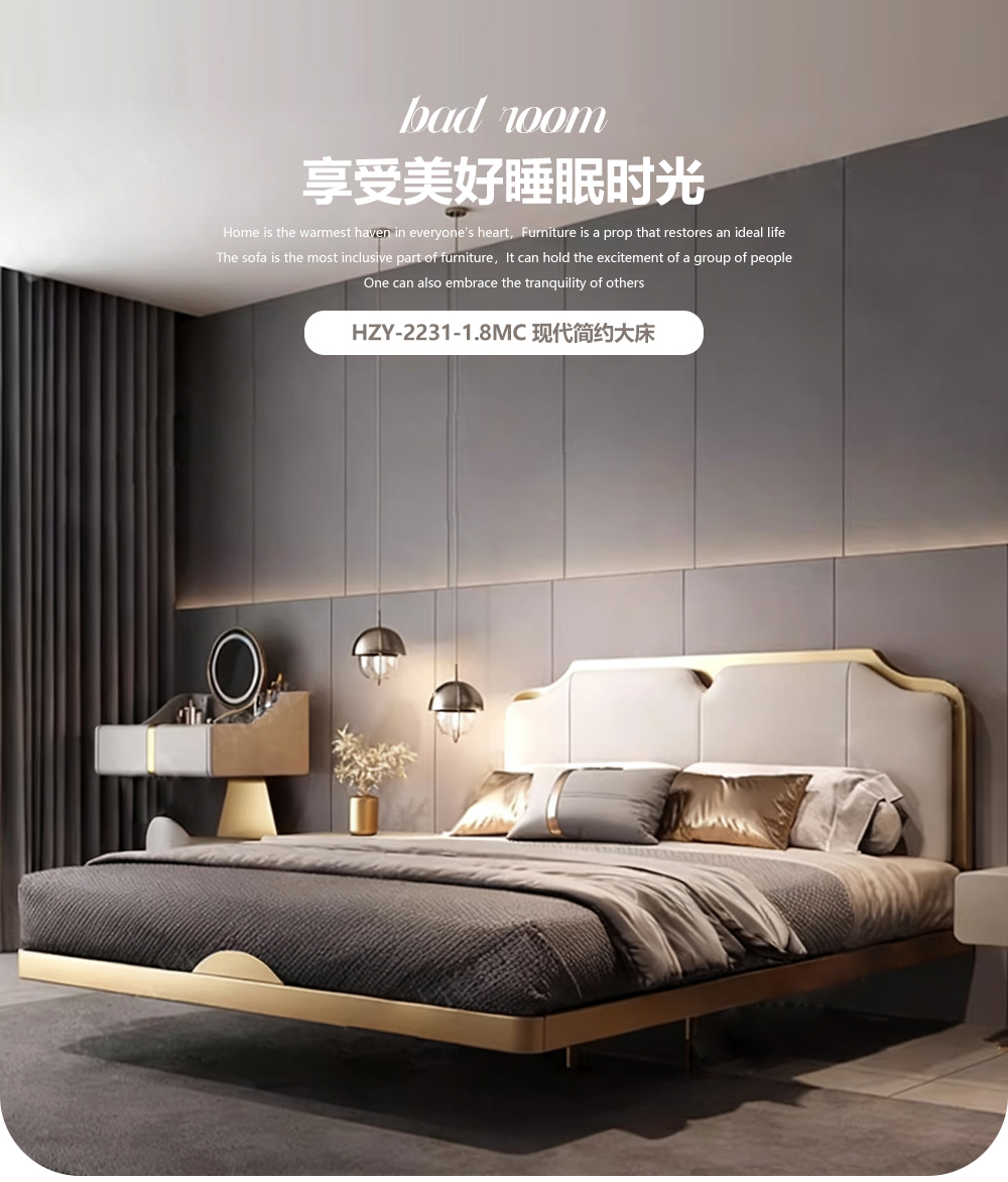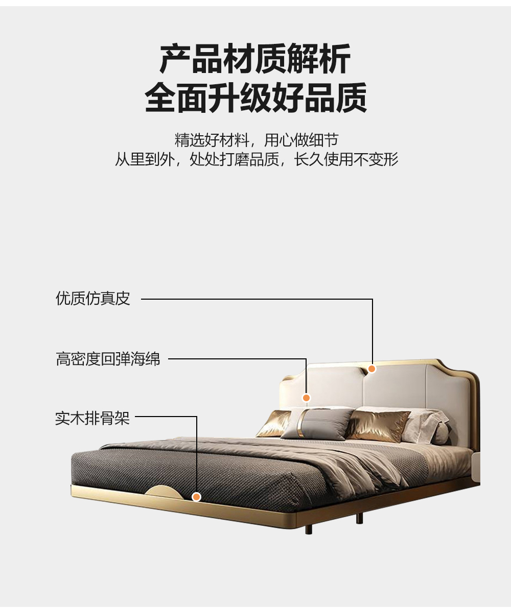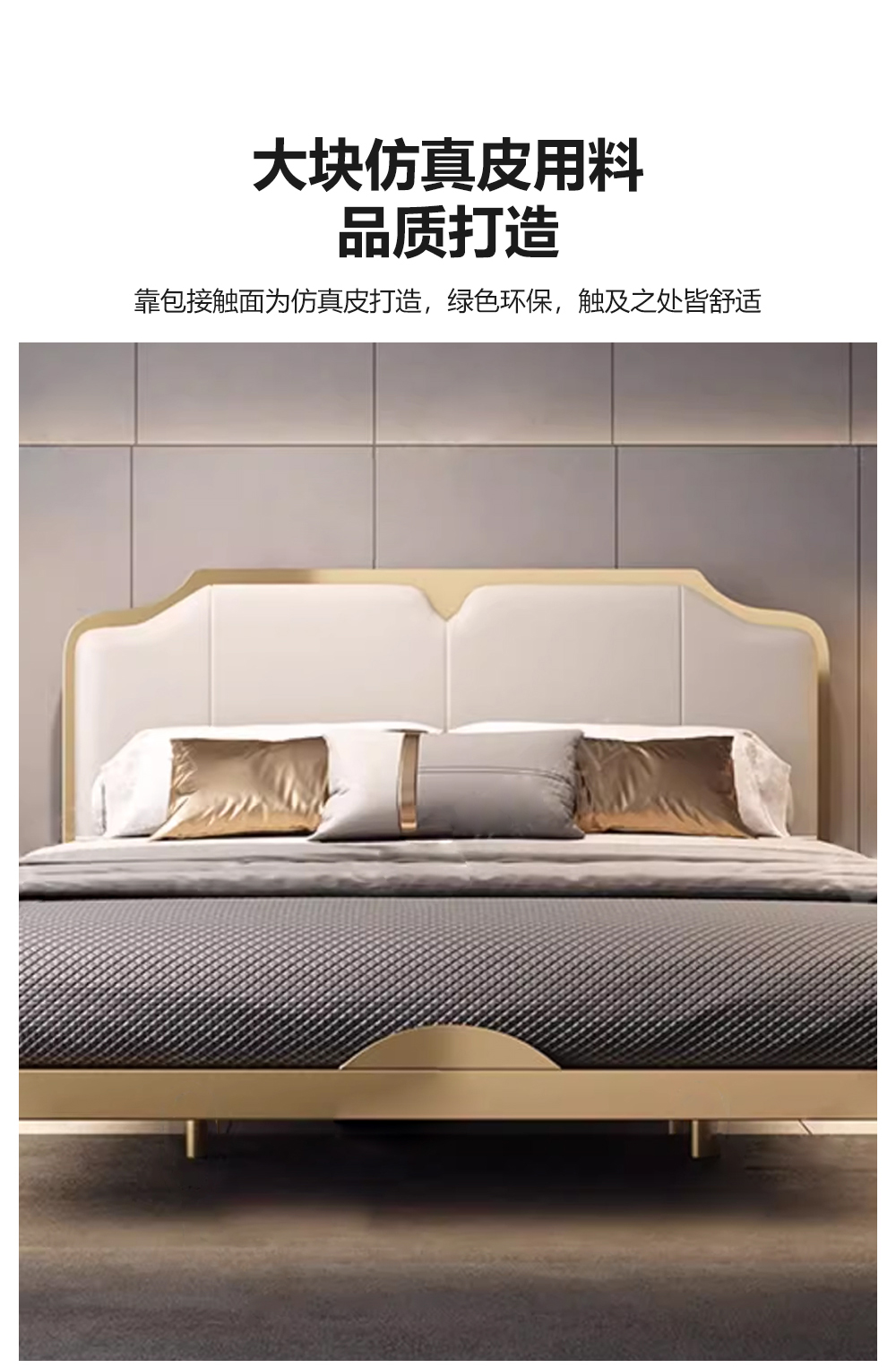 小红书系列 现代简约 实木框架+高回弹海绵+铜色不锈钢五金+仿真皮+仿皮 1.8米床