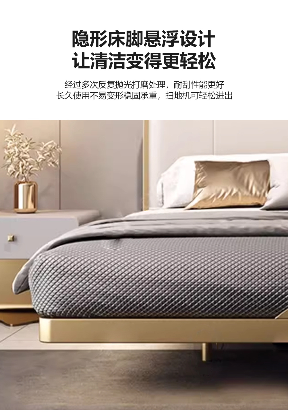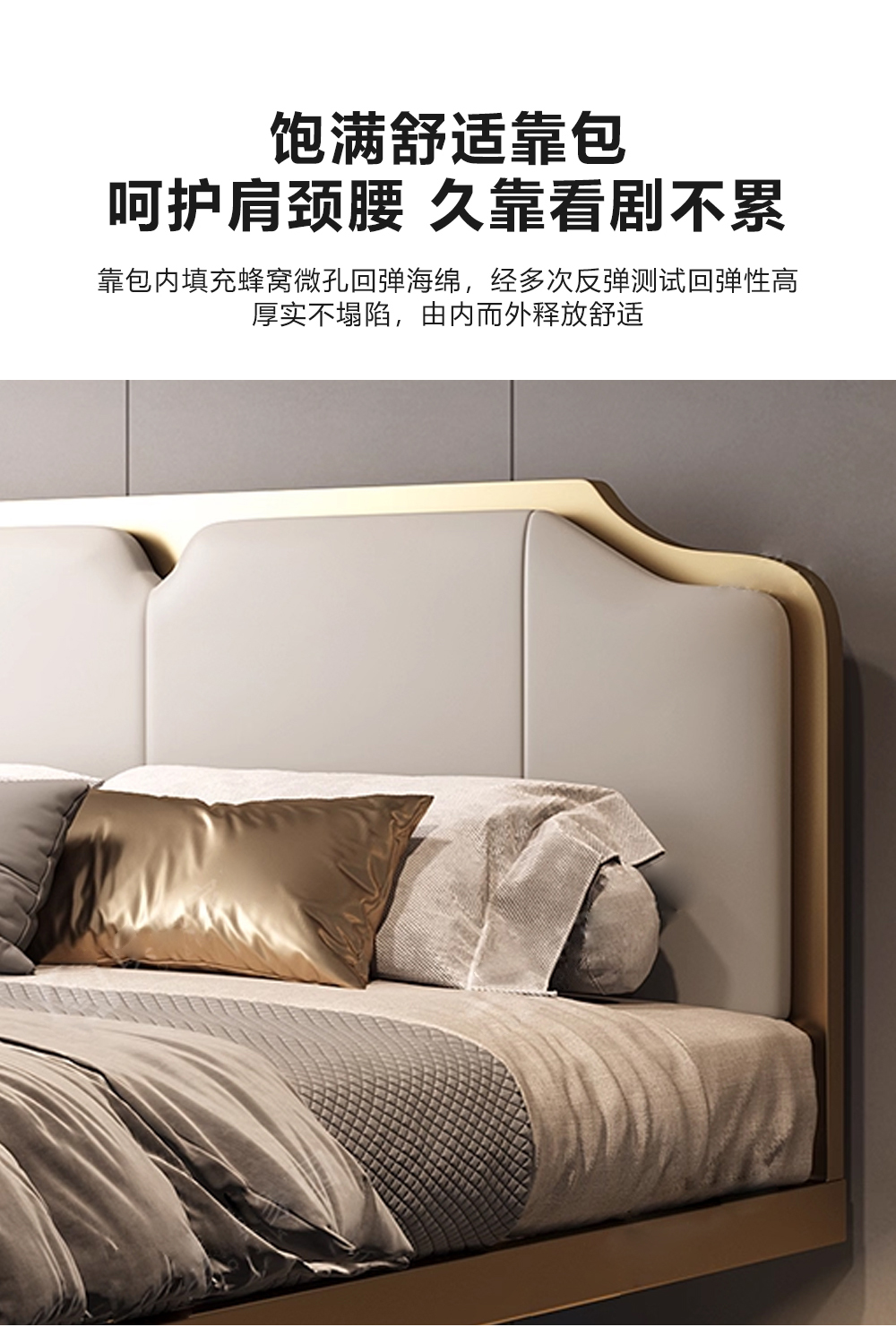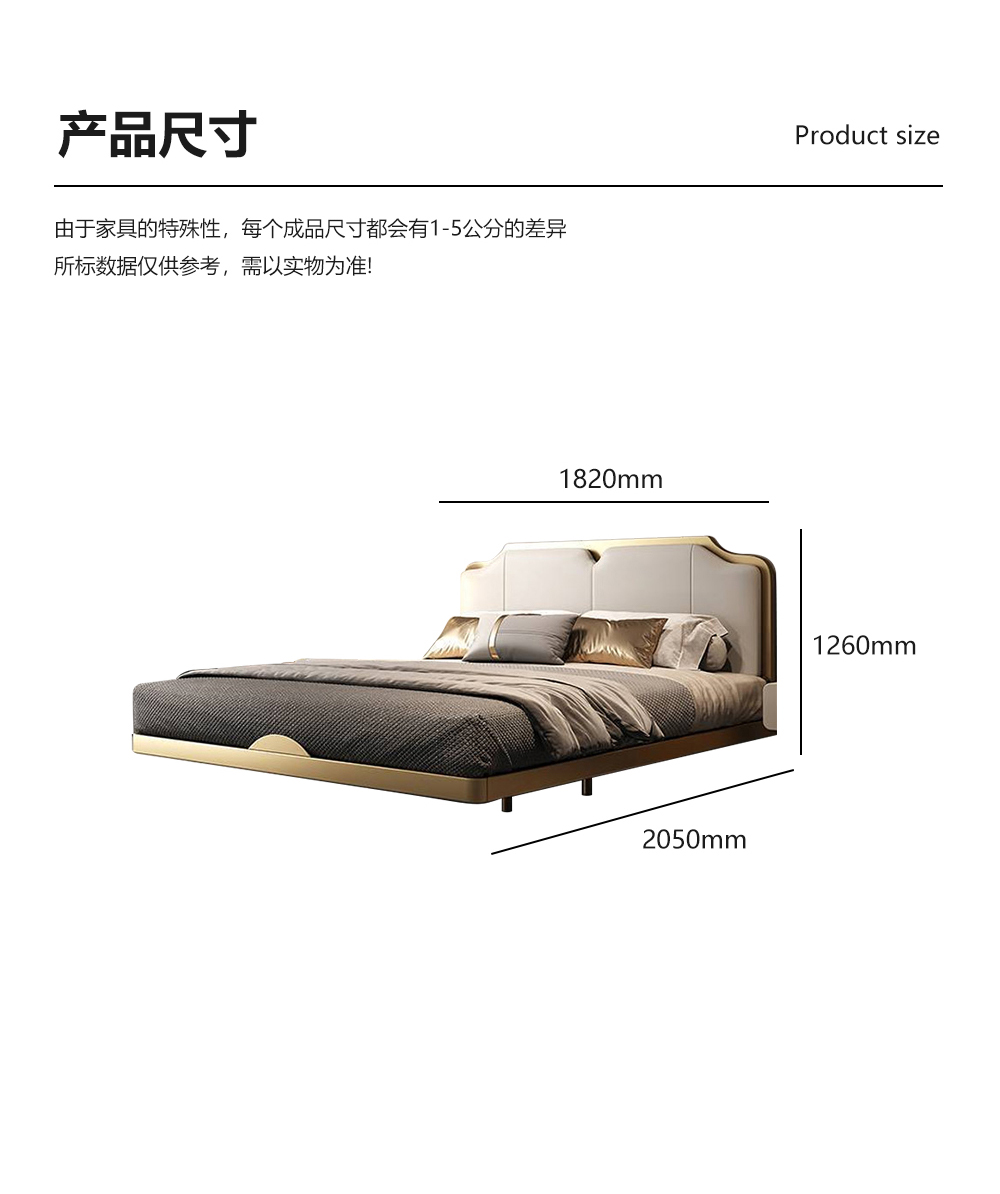 小红书系列 现代简约 实木框架+高回弹海绵+铜色不锈钢五金+仿真皮+仿皮 1.8米床
