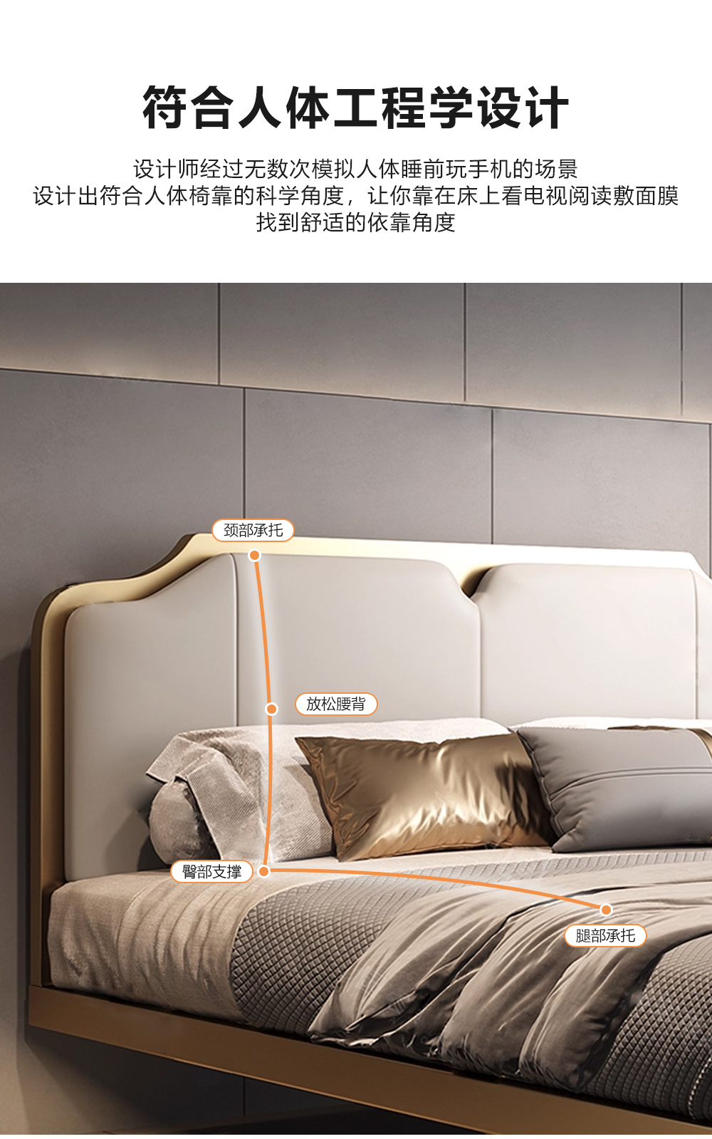 小红书系列 现代简约 实木框架+高回弹海绵+接触面头层牛皮 1.8米床¥6291