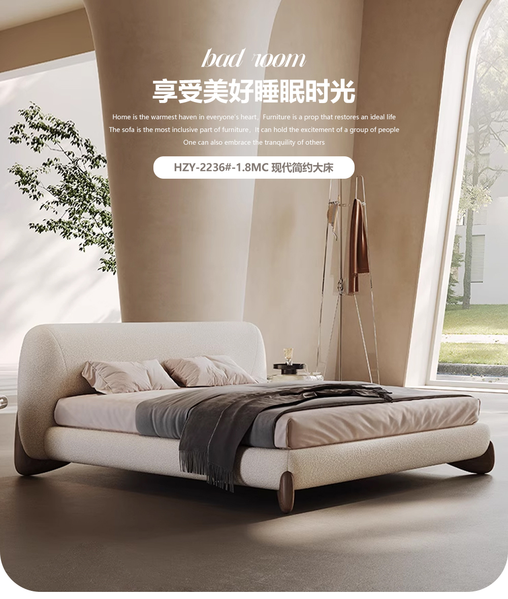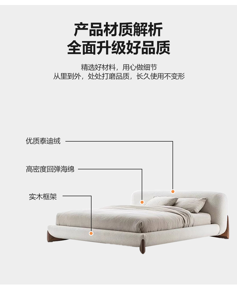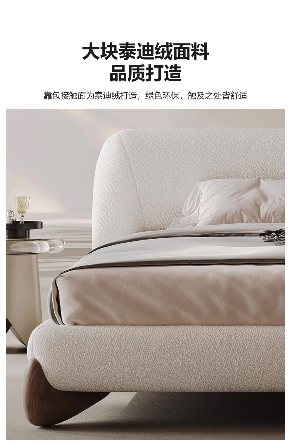 小红书系列 现代简约 实木框架+高回弹海绵+泰迪绒面料 1.8米床