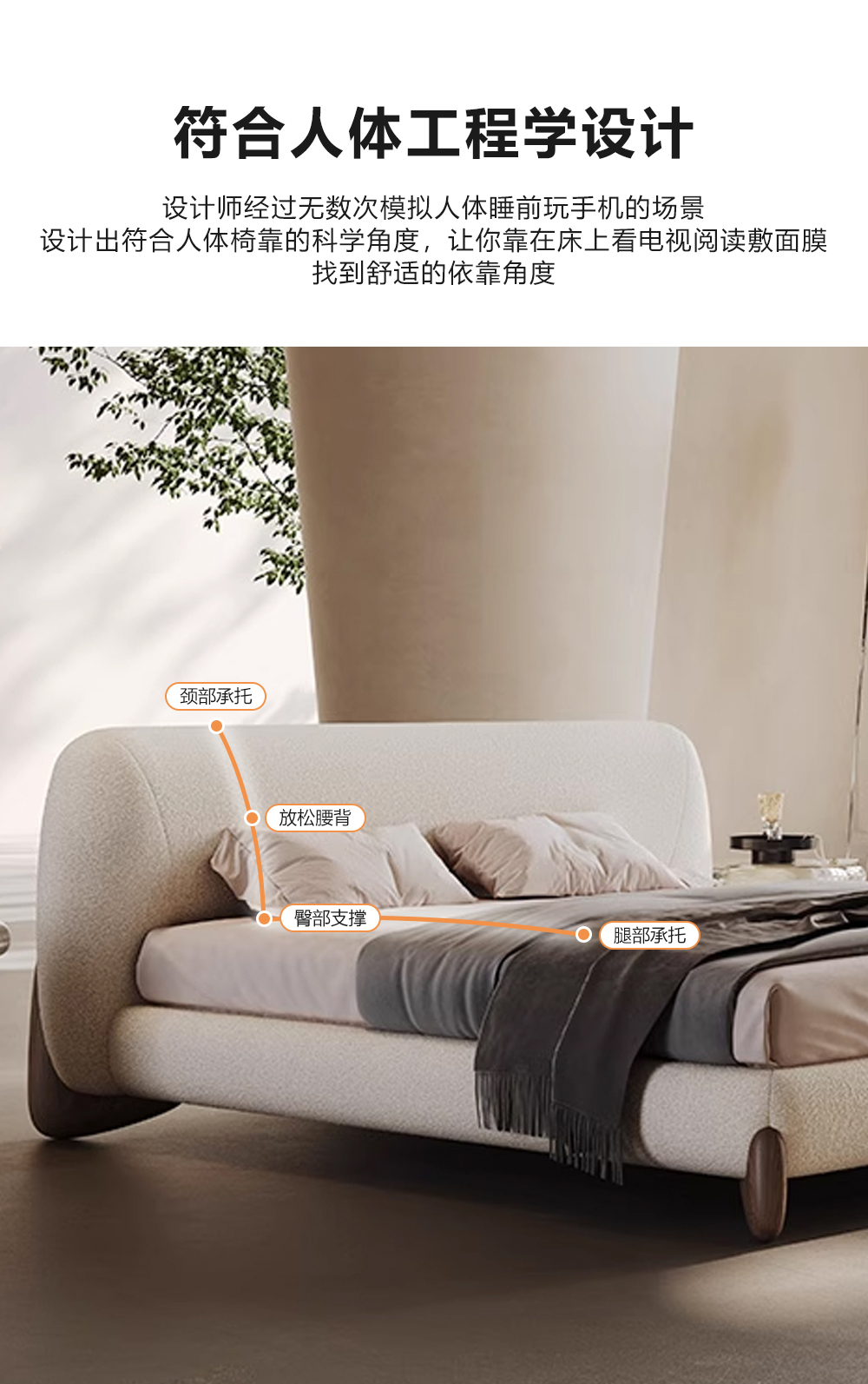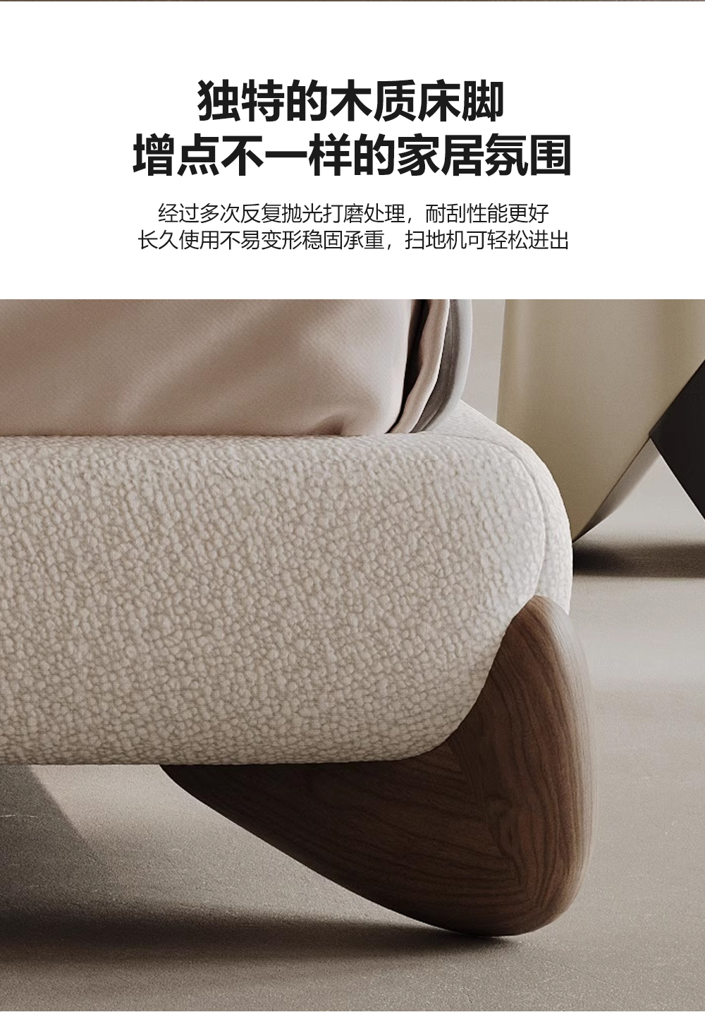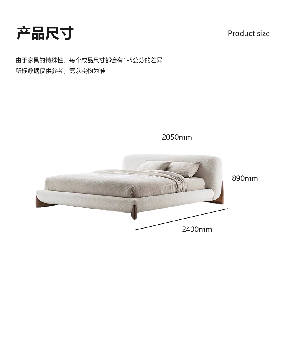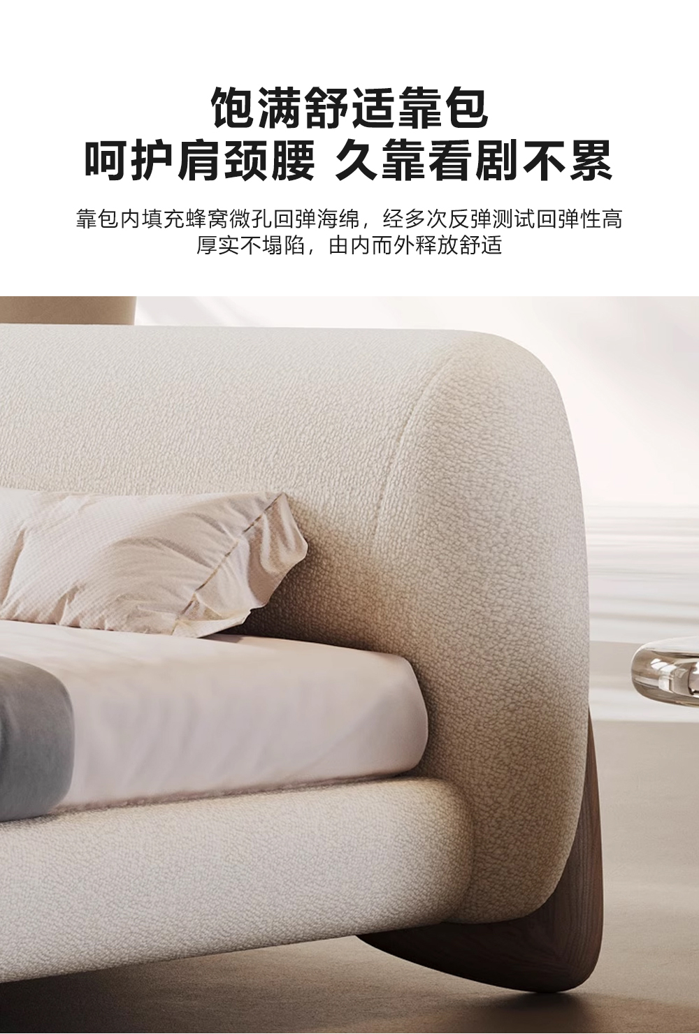 小红书系列 现代简约 实木框架+高回弹海绵+泰迪绒面料 1.8米床
