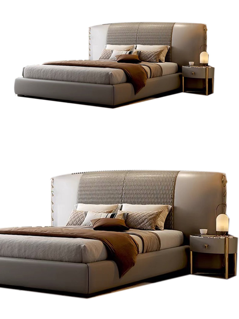 小红书系列 现代简约 实木框架+高回弹海绵+接触面头层牛皮+仿皮 1.8米床