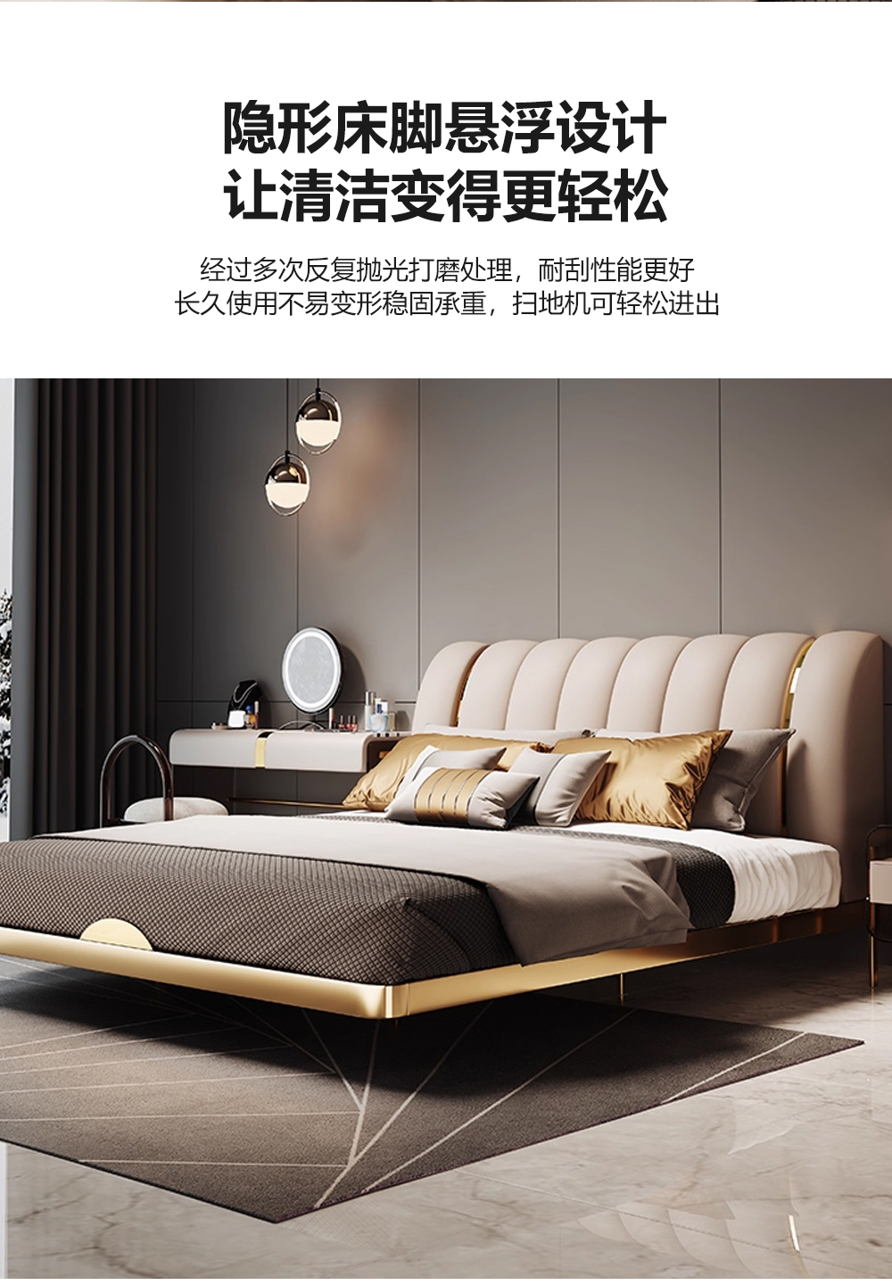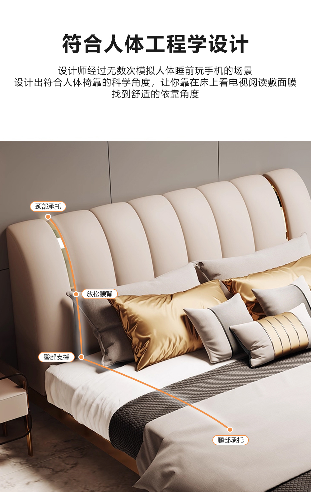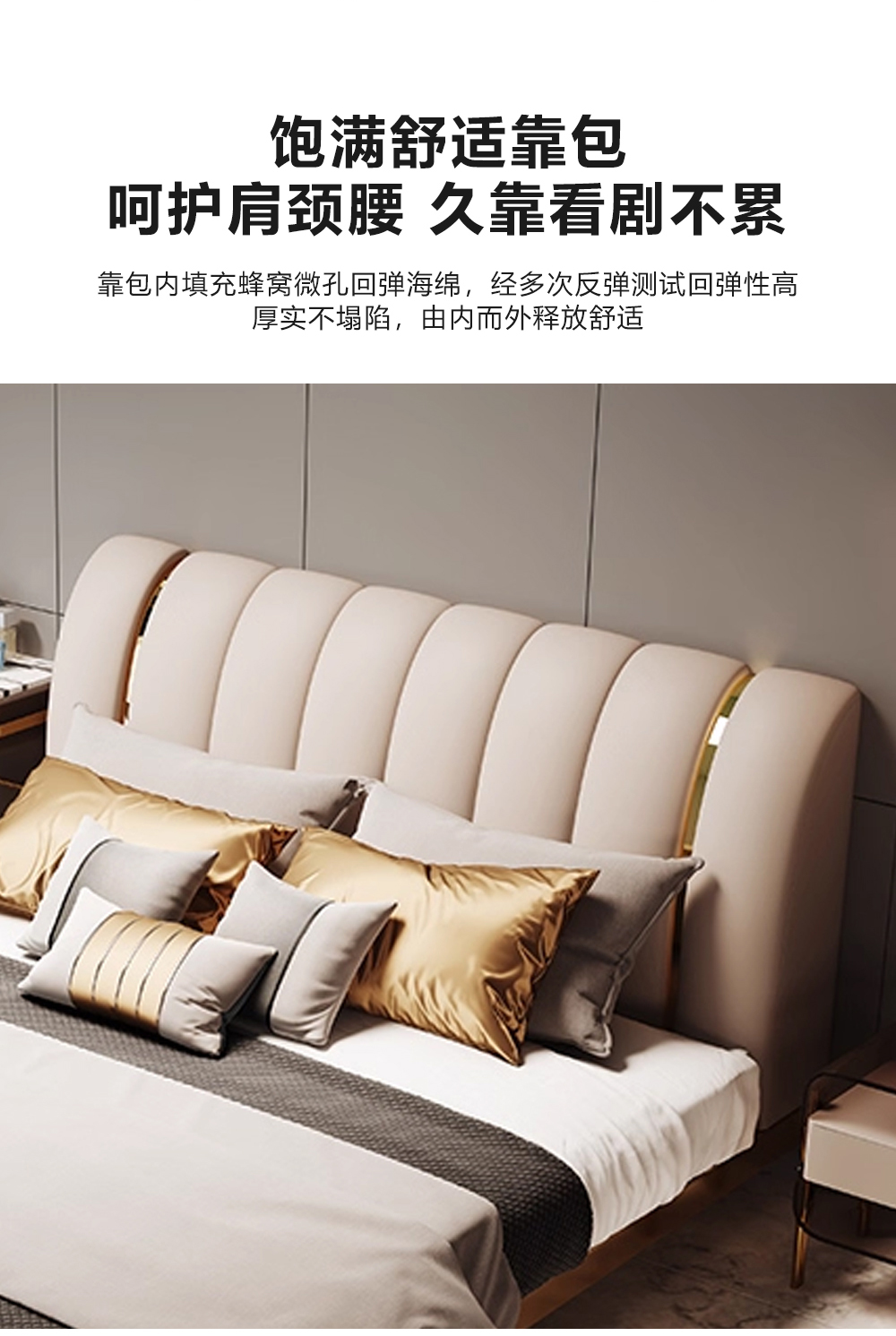 小红书系列 现代简约 实木框架+高回弹海绵+铜色不锈钢五金+仿真皮+仿皮 1.8米床