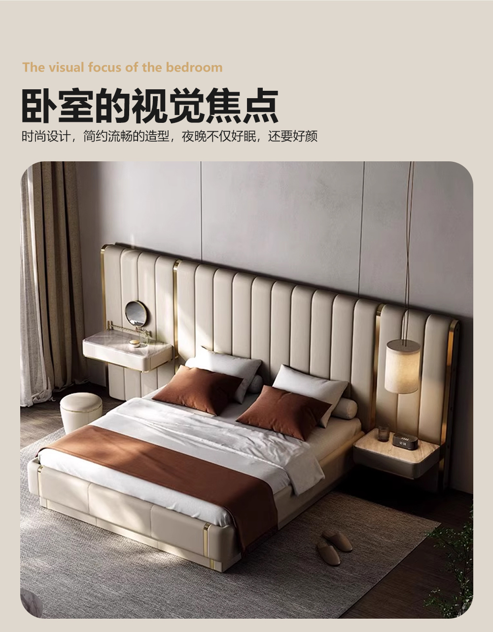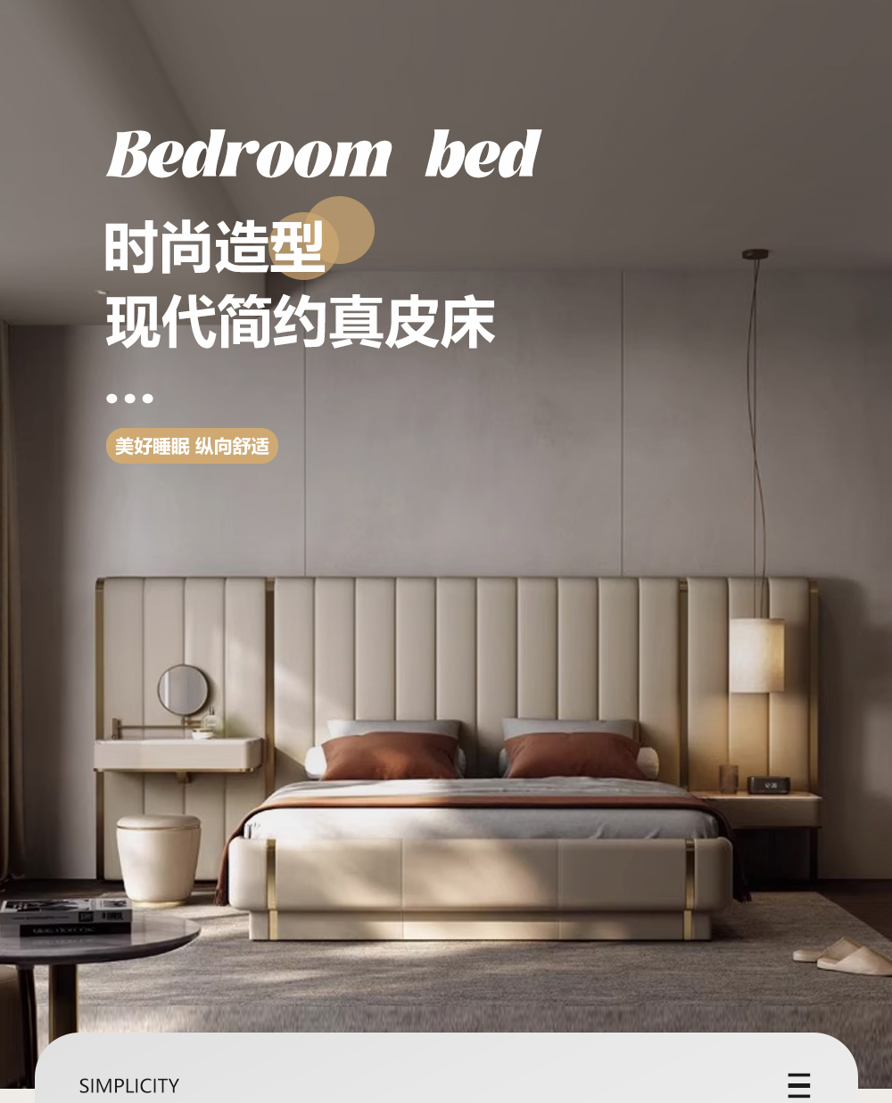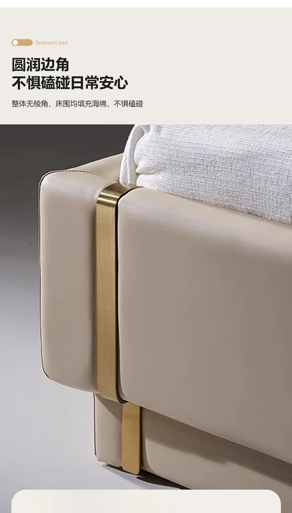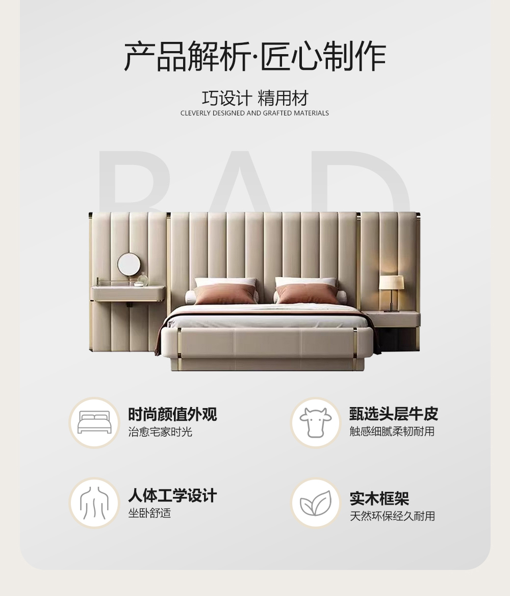 小红书系列 现代简约 实木框架+高回弹海绵+接触面头层牛皮 1.8米床
