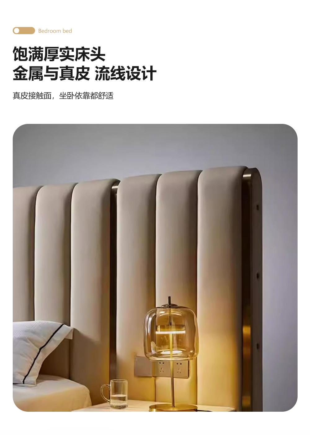 小红书系列 现代简约 实木框架+高回弹海绵+接触面头层牛皮+仿皮 1.8米床