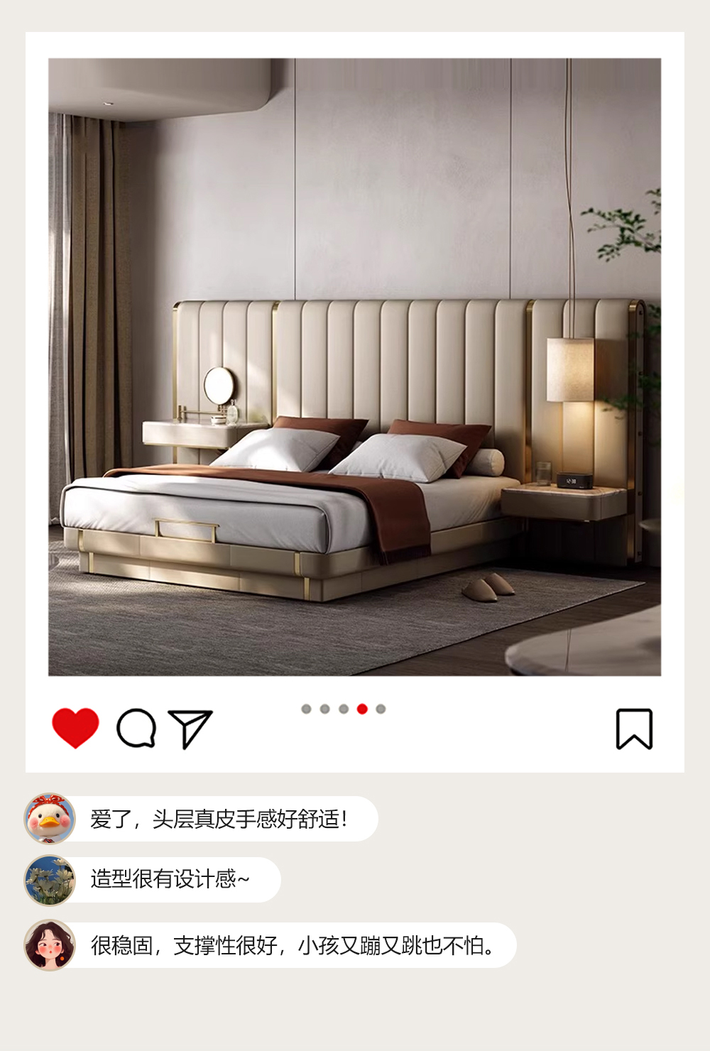小红书系列 现代简约 实木框架+高回弹海绵+接触面头层牛皮 1.8米床¥4389