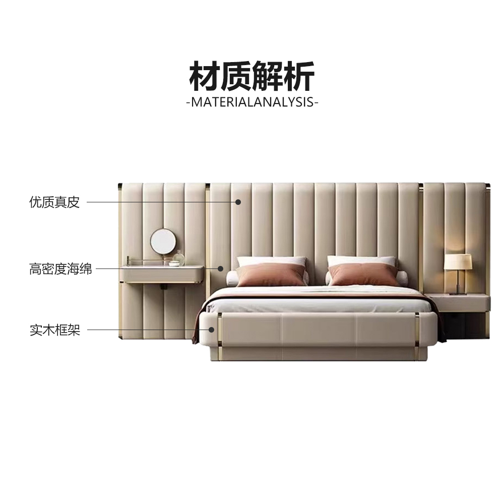 小红书系列 现代简约 实木框架+白蜡木床边+高回弹海绵+接触面头层牛皮+仿皮 1.8米床¥12630