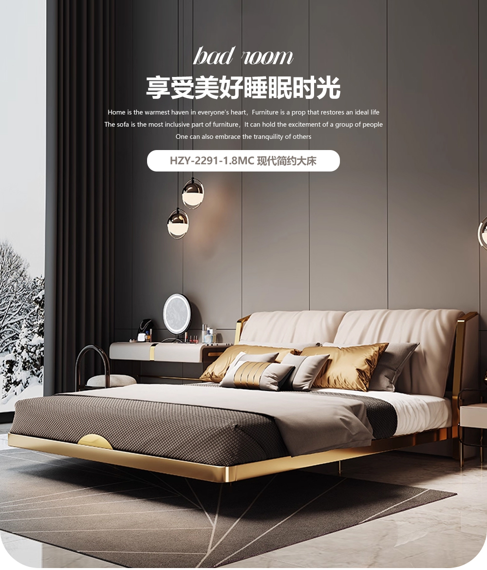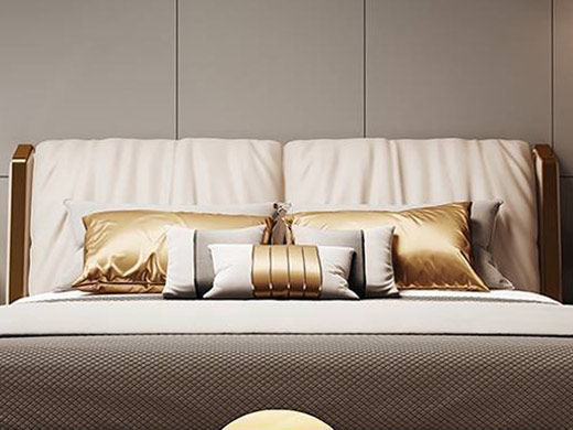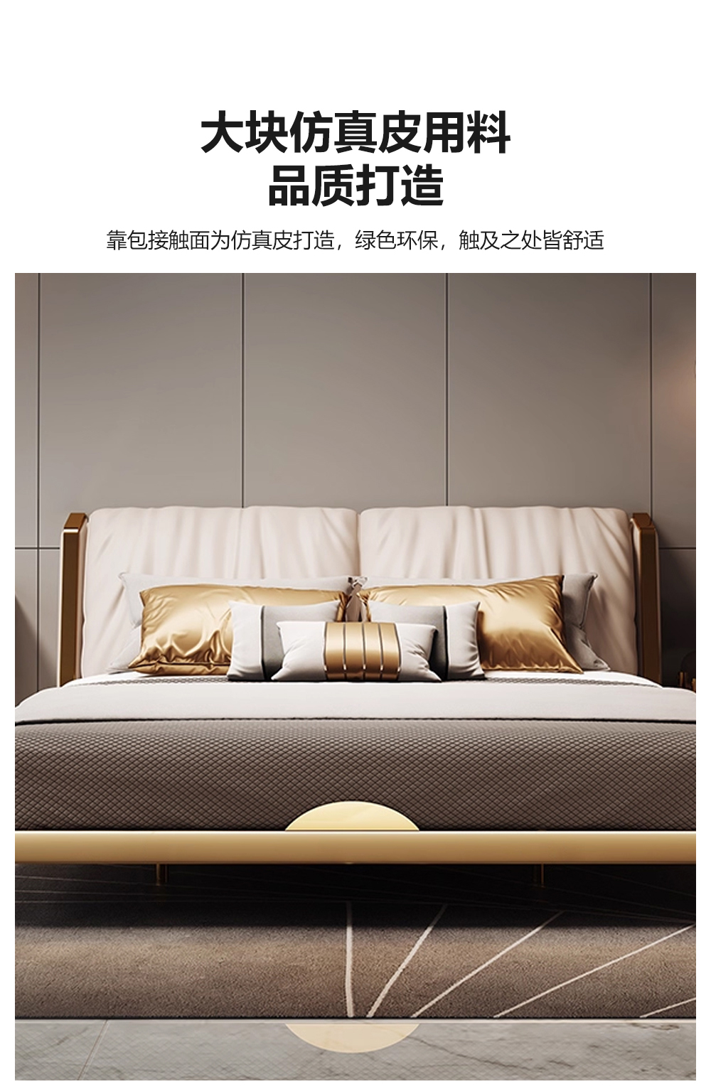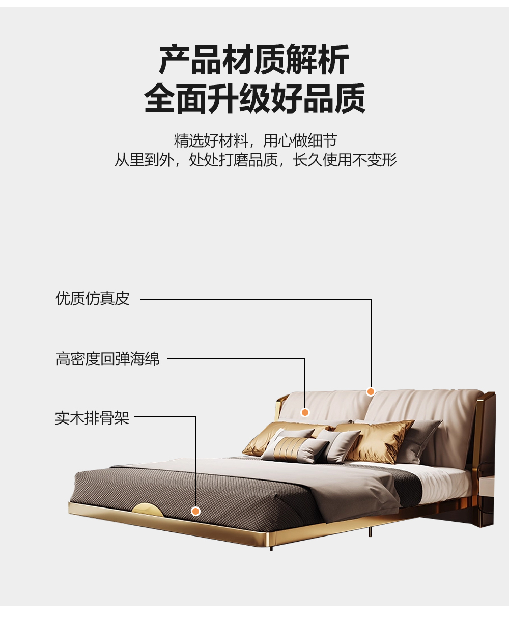 小红书系列 现代简约 实木框架+高回弹海绵+铜色不锈钢五金+仿真皮+仿皮 1.8米床